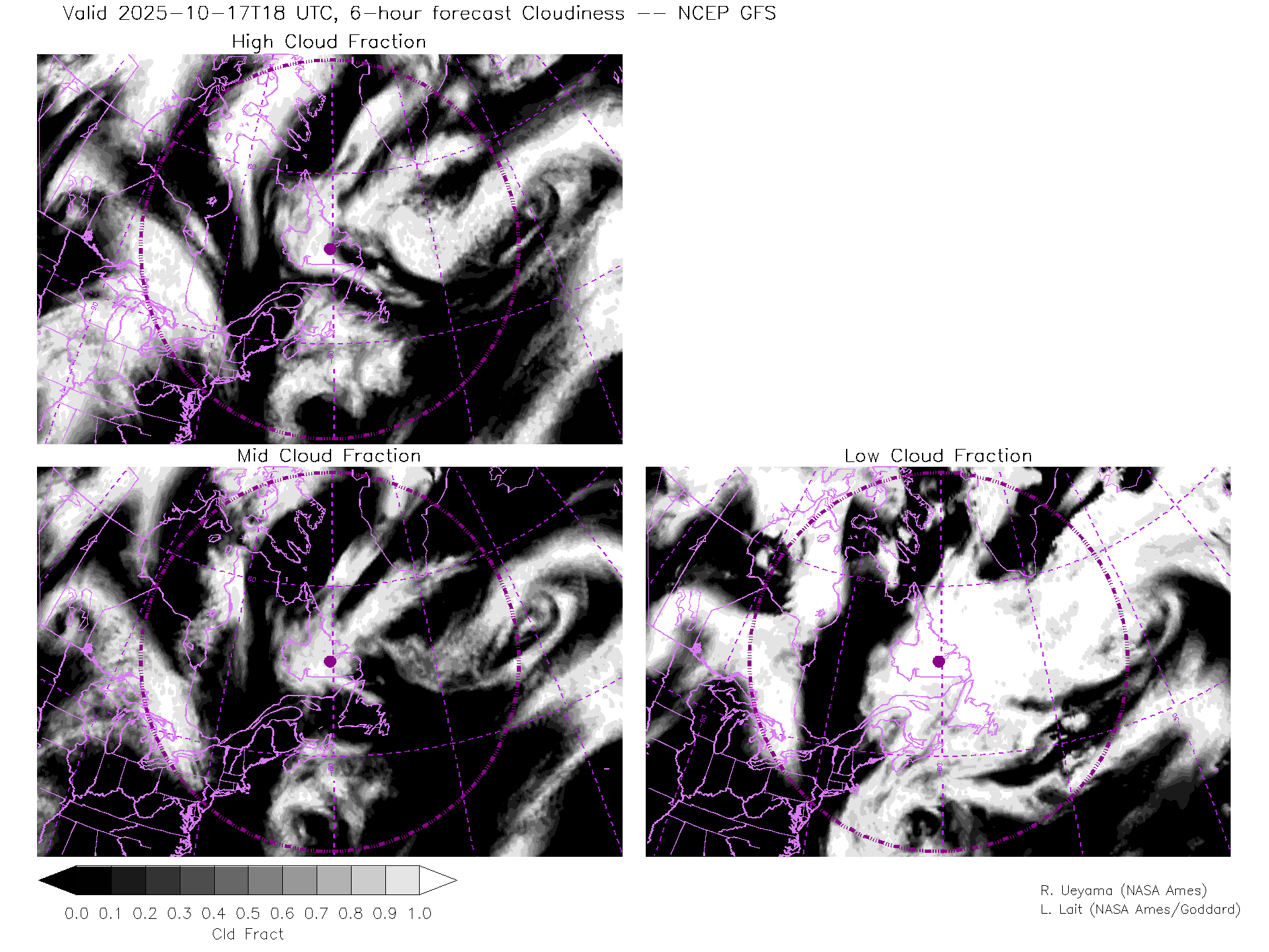 NCEP GFS Forecast Cloud Fraction (High, Mid, Low)