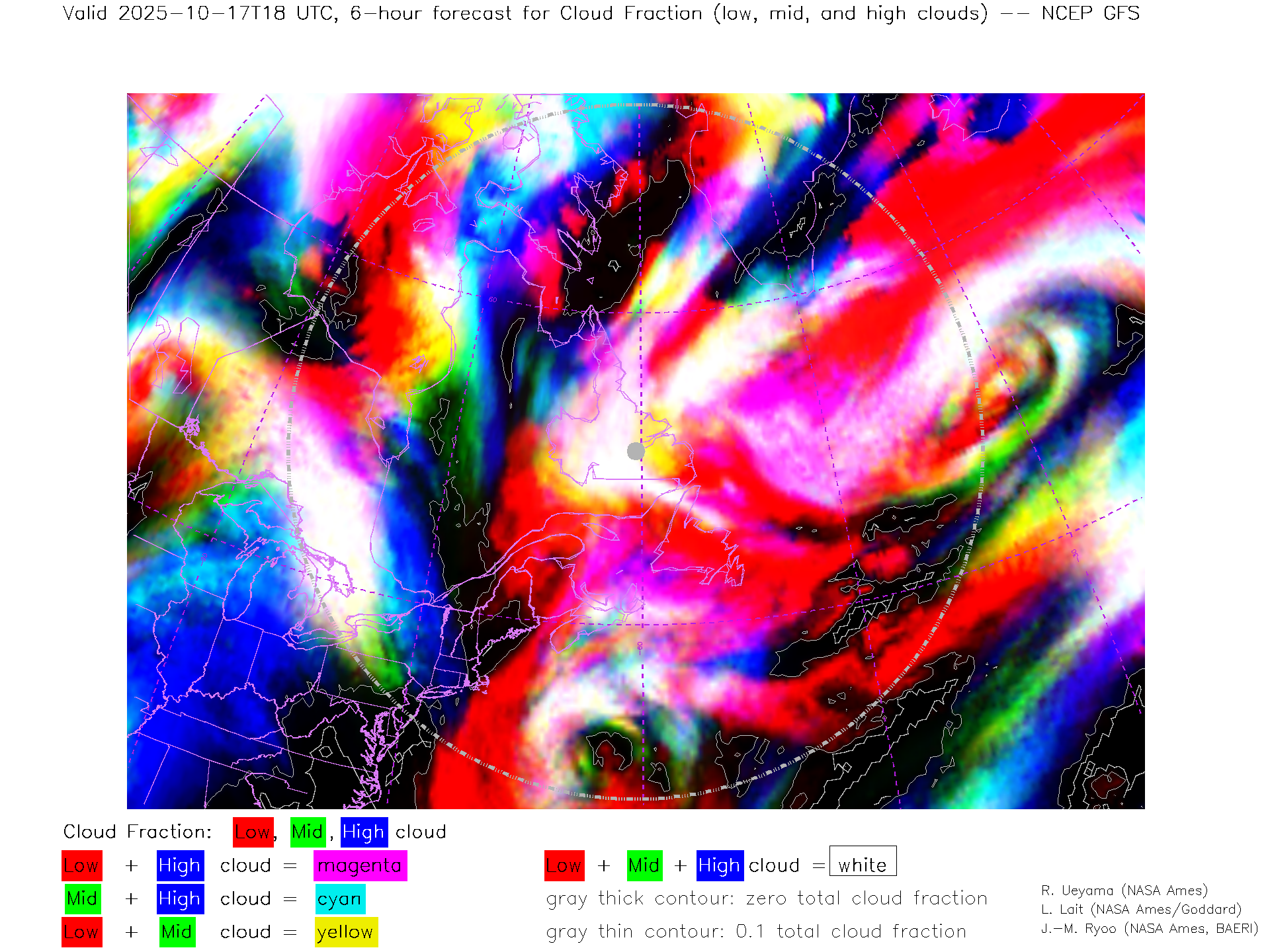 NCEP GFS Forecast Low-, Mid- and High-level Cloud Fraction