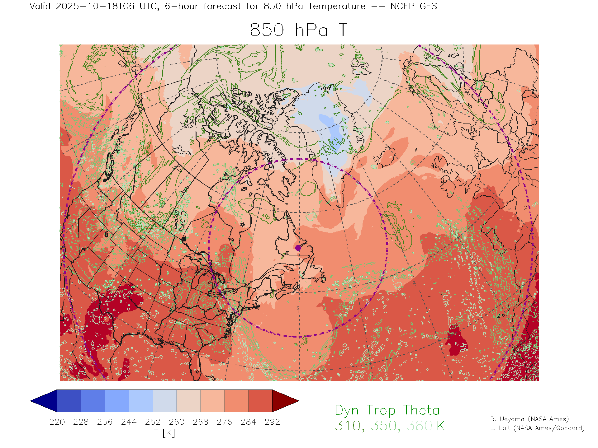 NCEP GFS Forecast 850 hPa Temp.