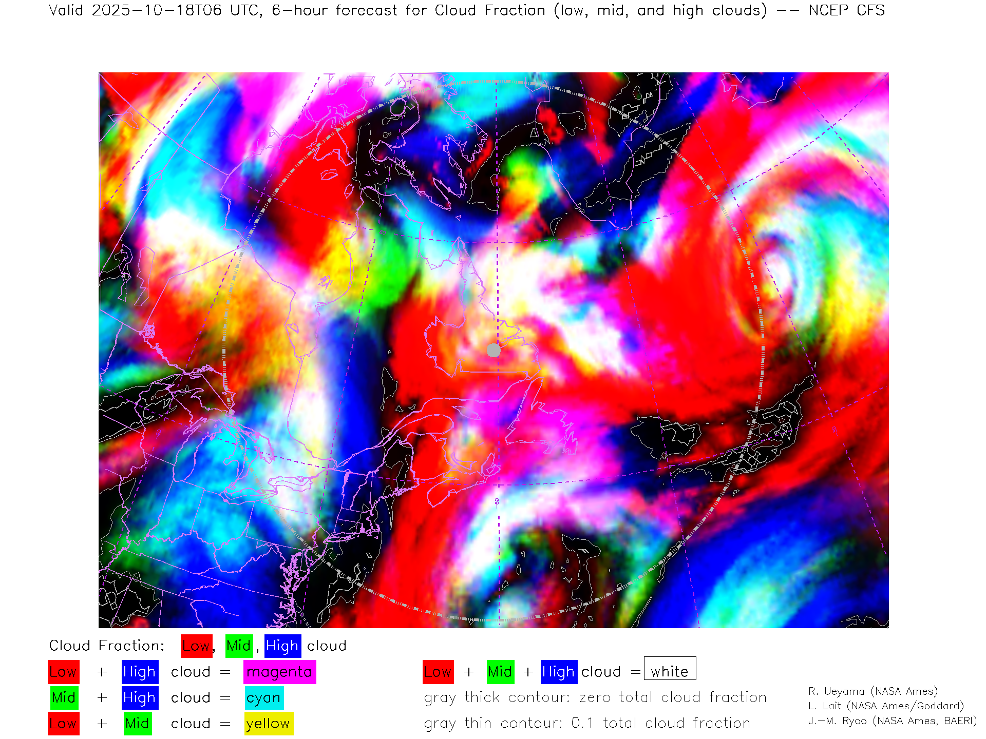 NCEP GFS Forecast Low-, Mid- and High-level Cloud Fraction