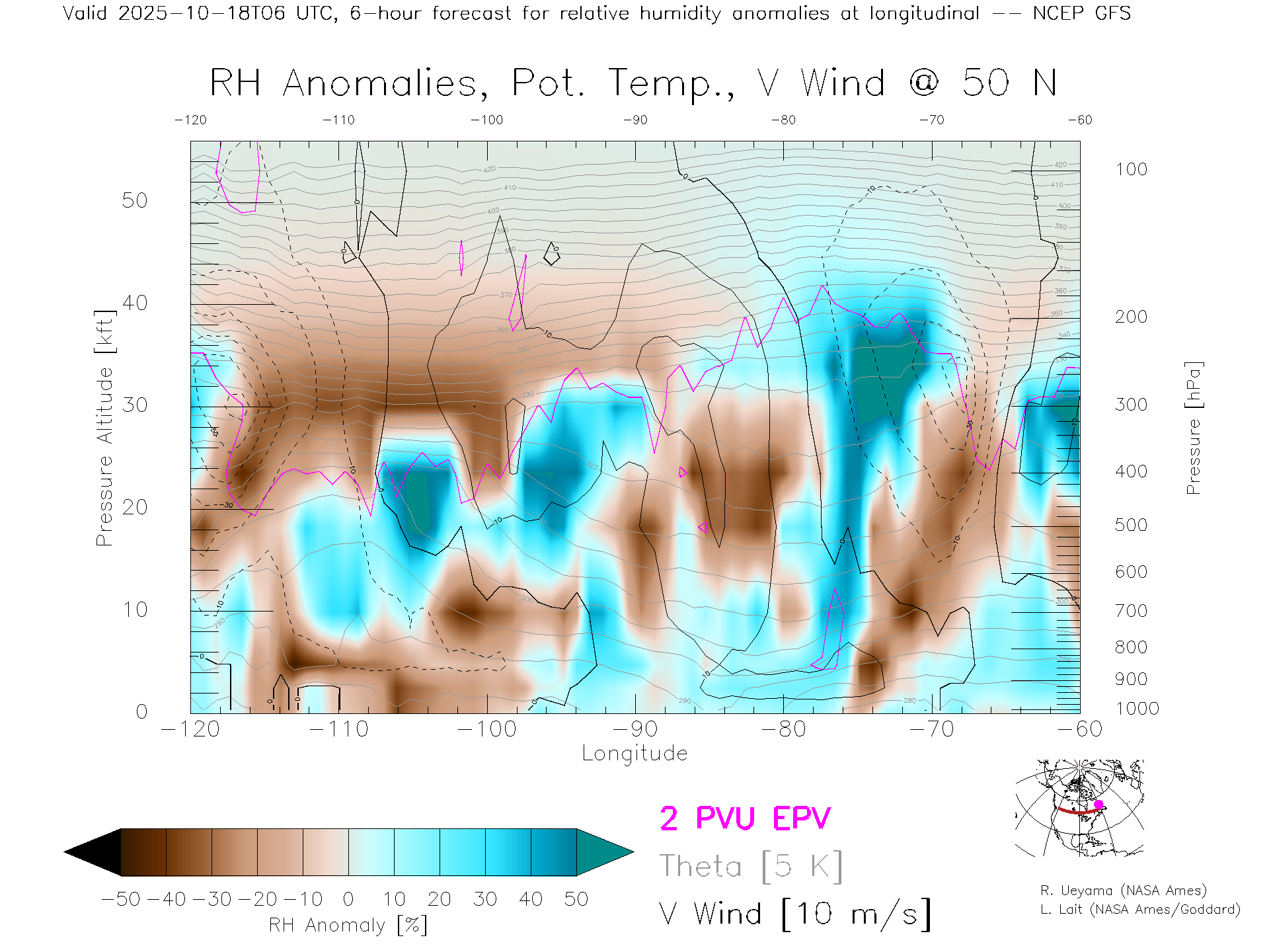NCEP GFS Forecast Rel. Hum. X-Section (50 N)