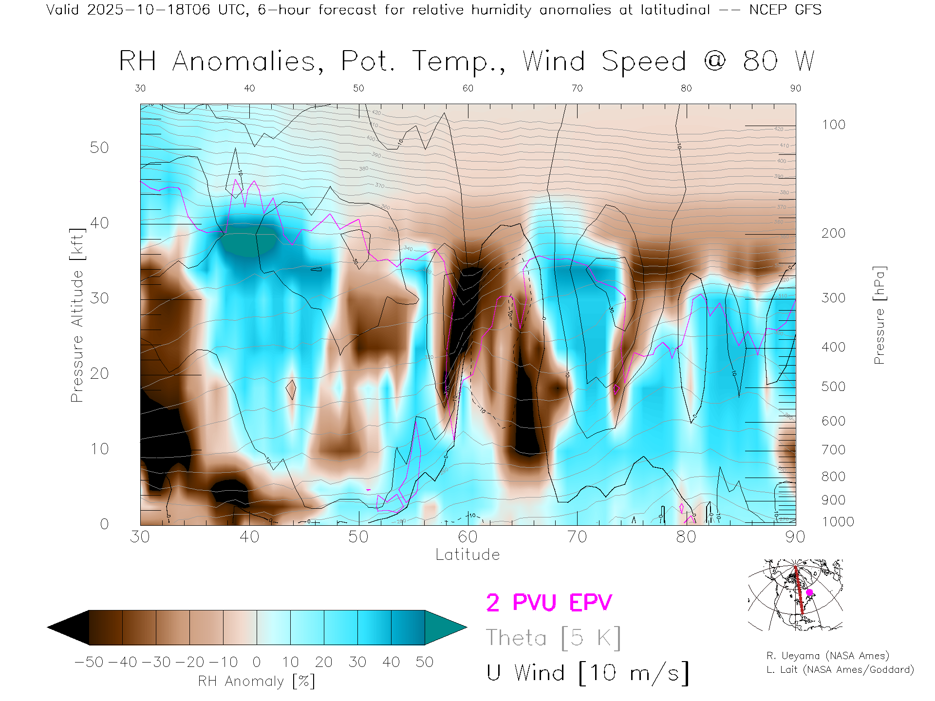 NCEP GFS Forecast Rel. Hum. X-Section (80 W)