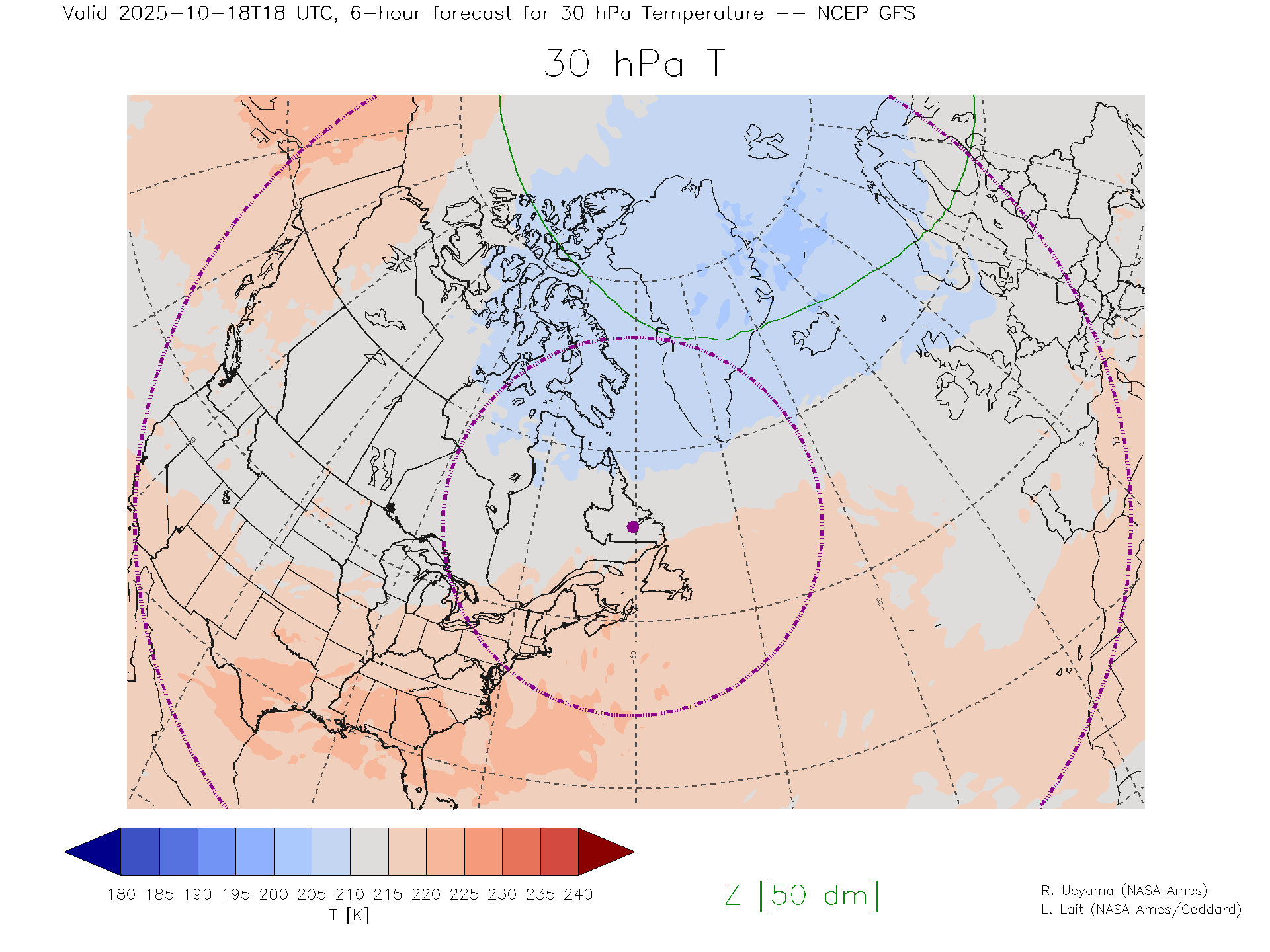 NCEP GFS Forecast 30 hPa Temp.