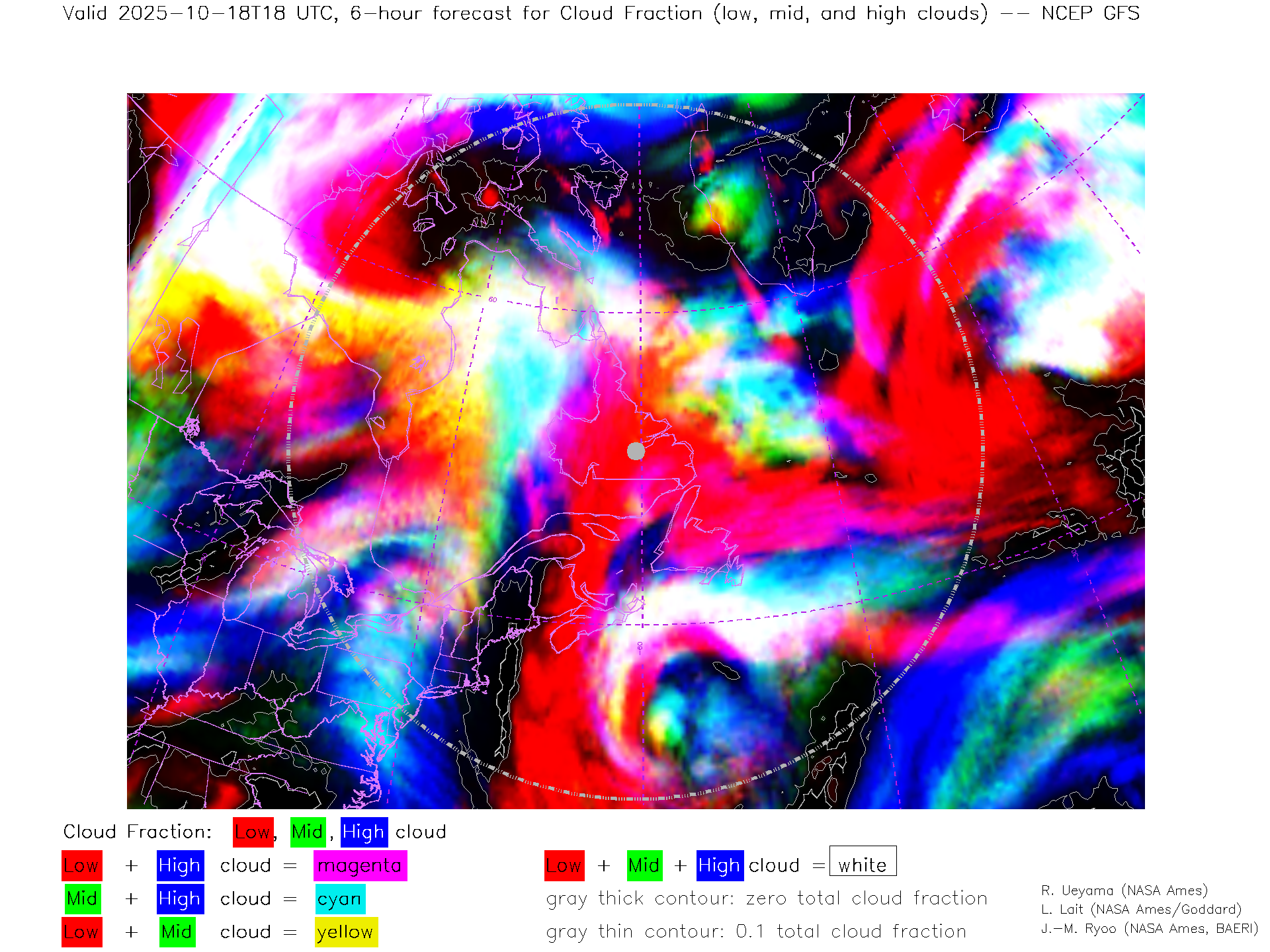 NCEP GFS Forecast Low-, Mid- and High-level Cloud Fraction