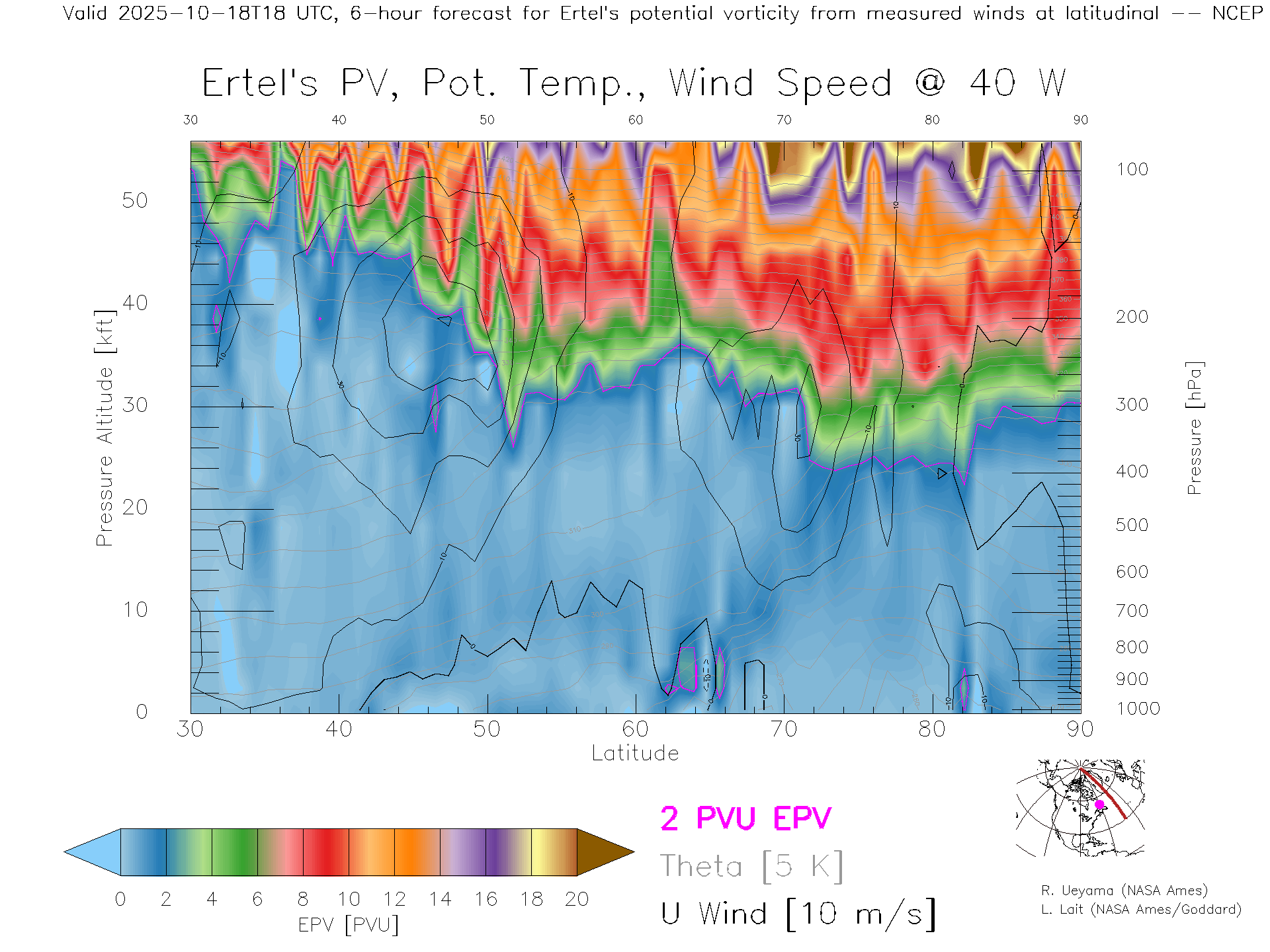 NCEP GFS Forecast PV X-Section (40 W)