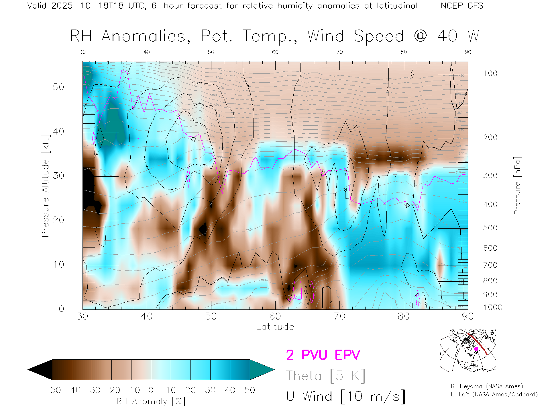 NCEP GFS Forecast Rel. Hum. X-Section (40 W)