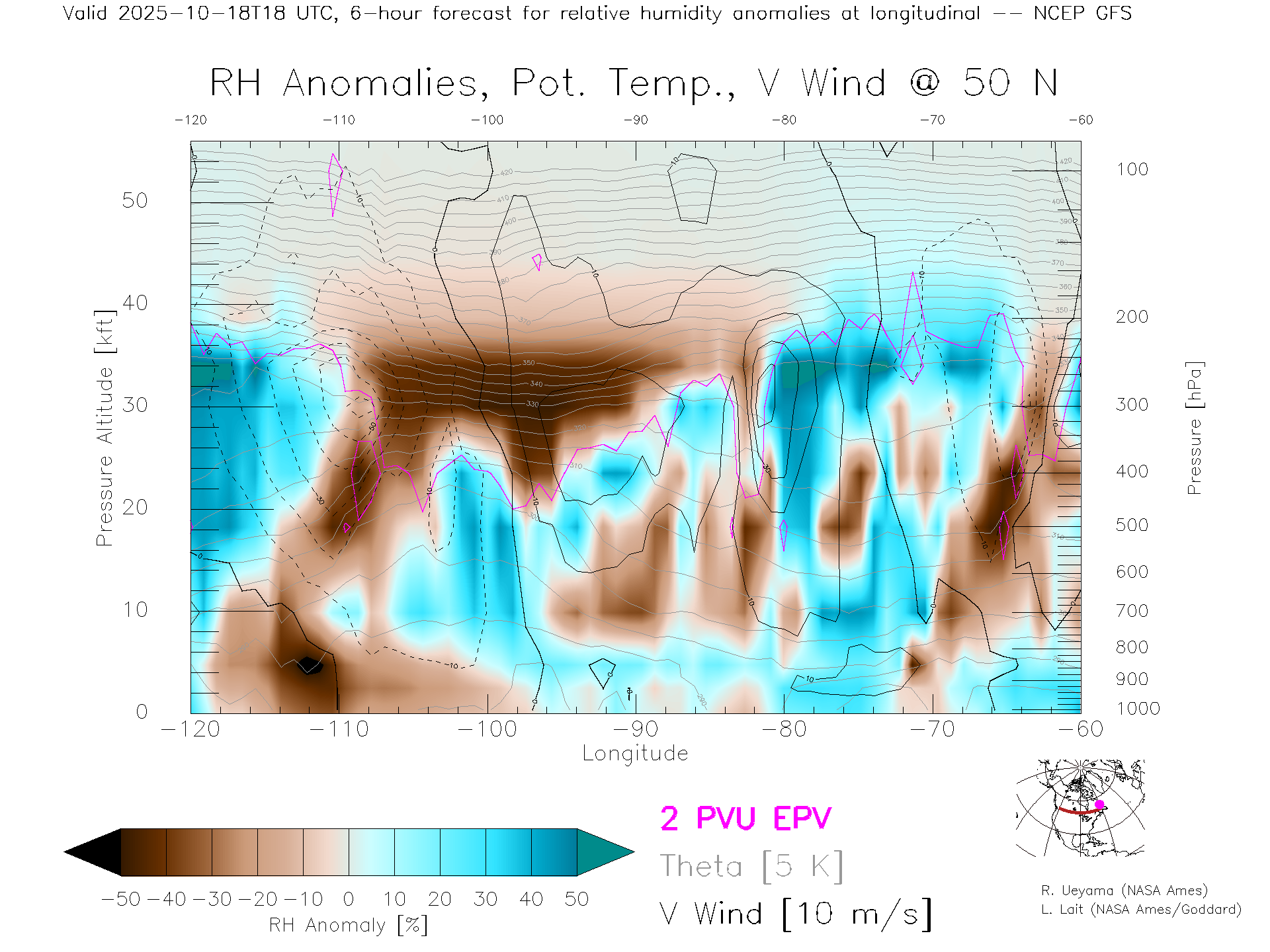 NCEP GFS Forecast Rel. Hum. X-Section (50 N)