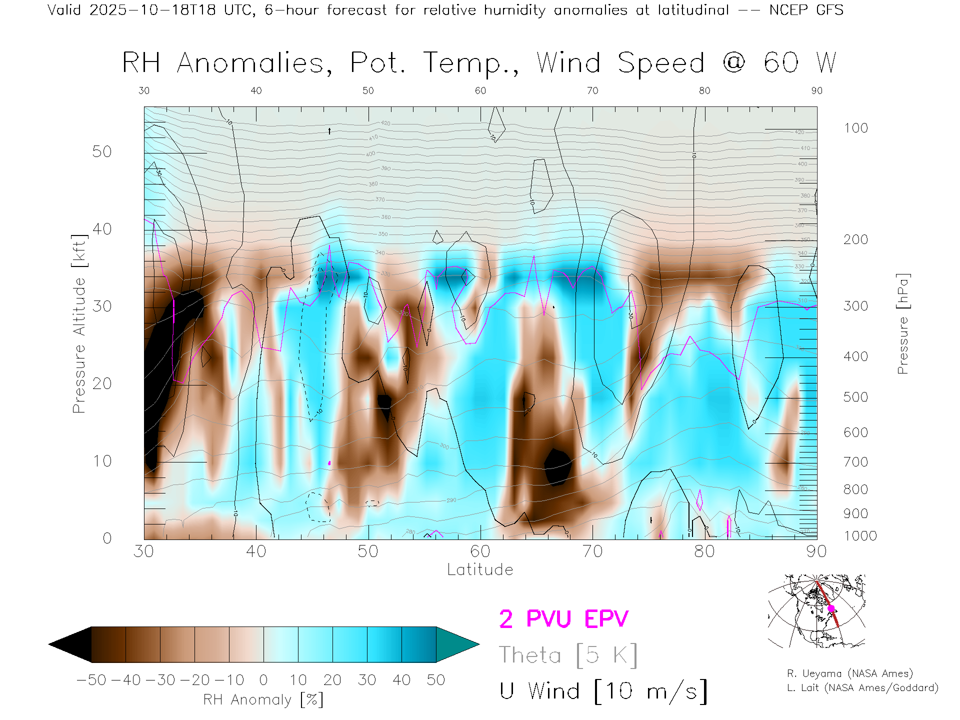 NCEP GFS Forecast Rel. Hum. X-Section (60 W)
