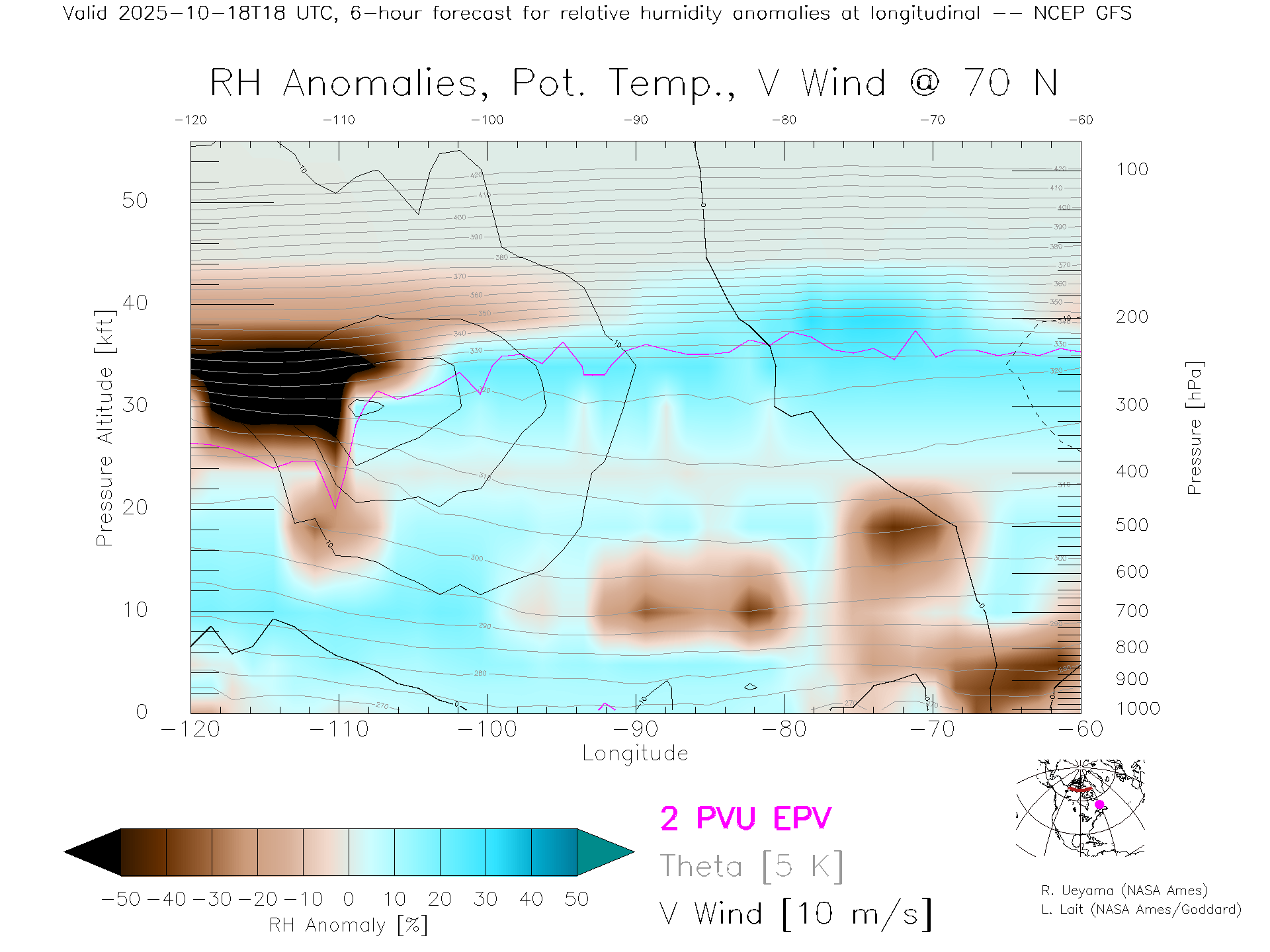NCEP GFS Forecast Rel. Hum. X-Section (70 N)