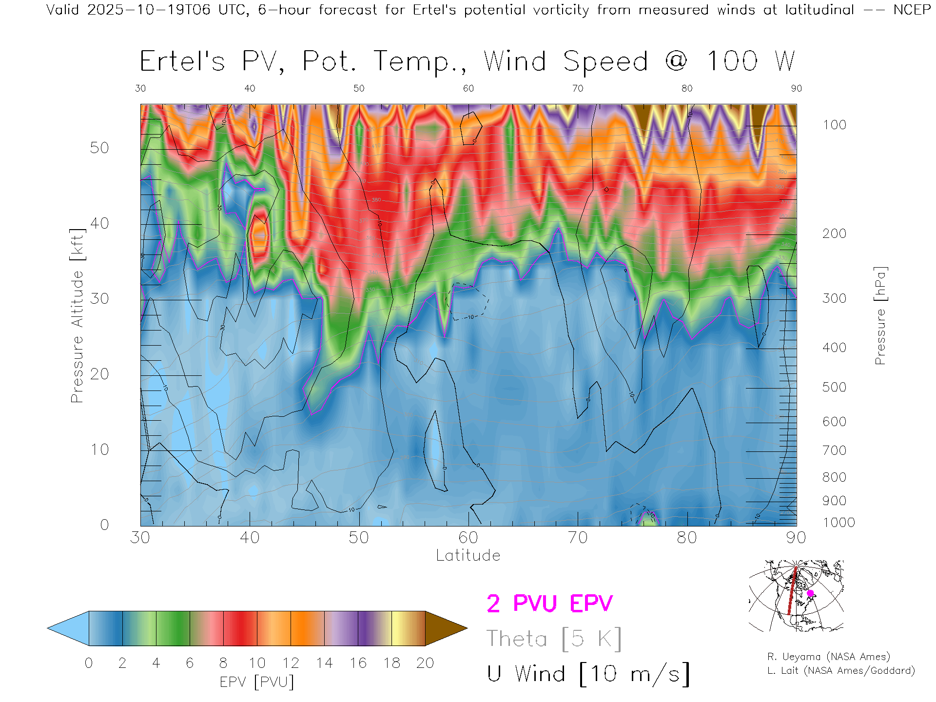 NCEP GFS Forecast PV X-Section (100 W)