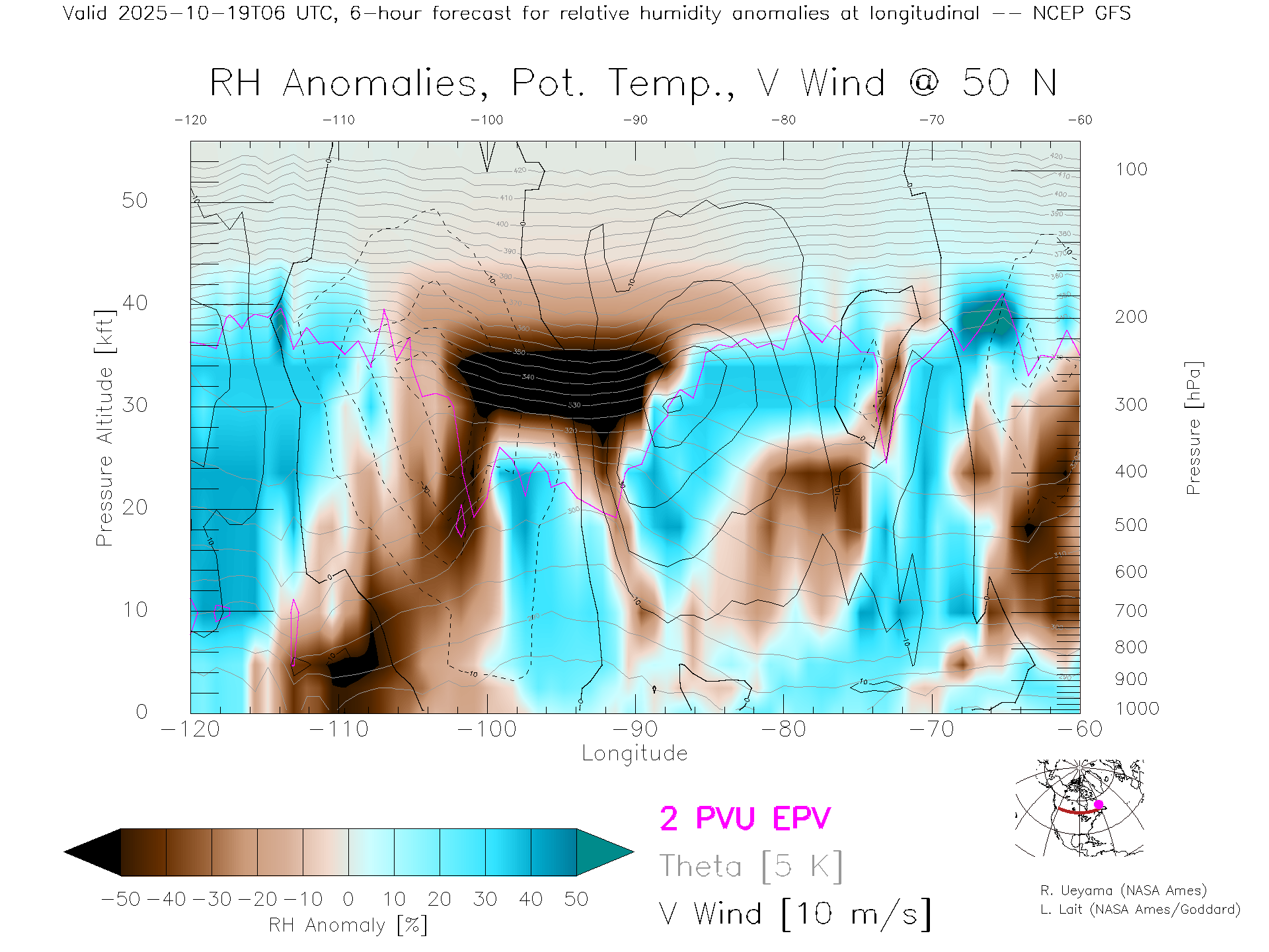 NCEP GFS Forecast Rel. Hum. X-Section (50 N)