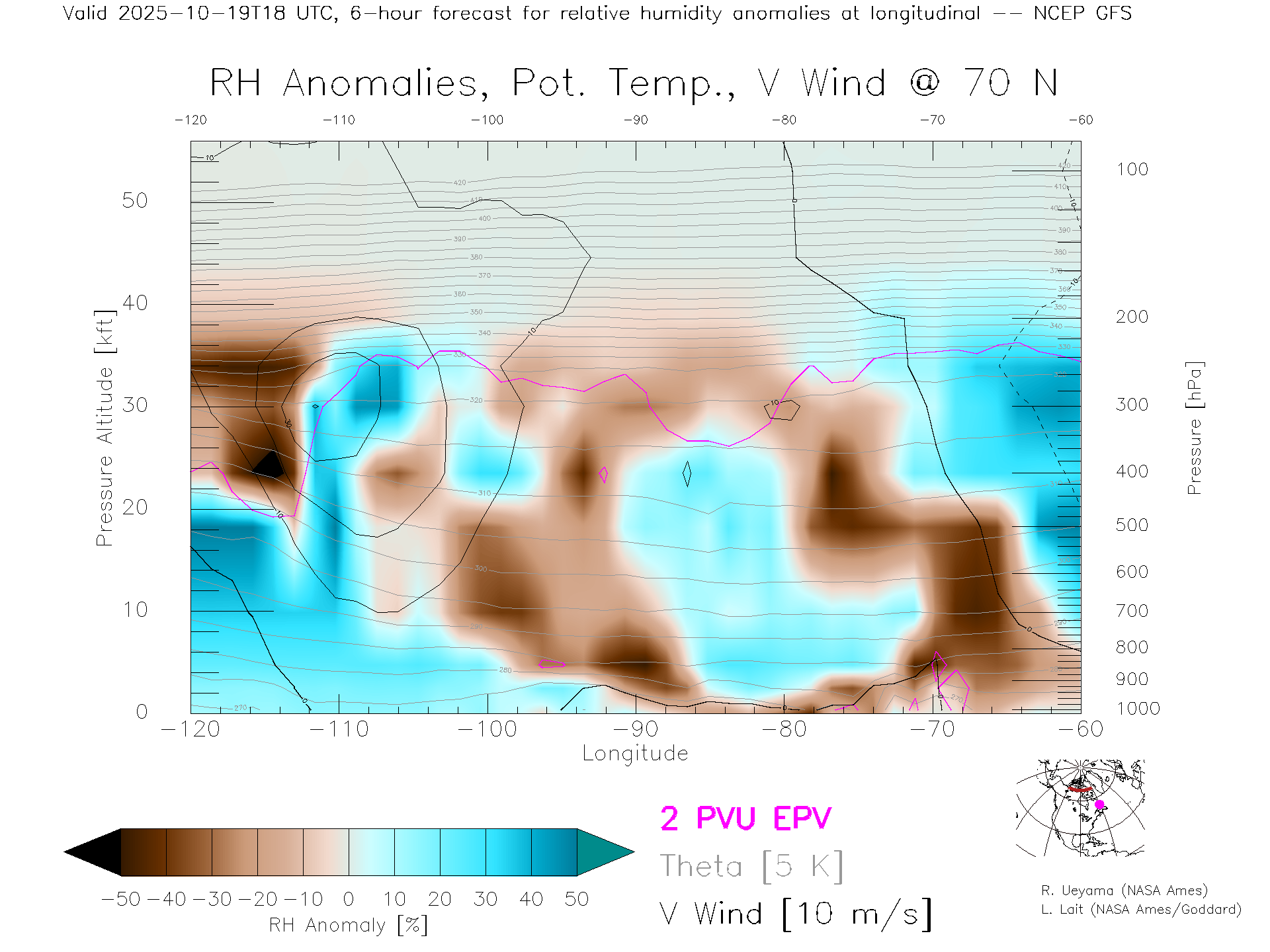 NCEP GFS Forecast Rel. Hum. X-Section (70 N)