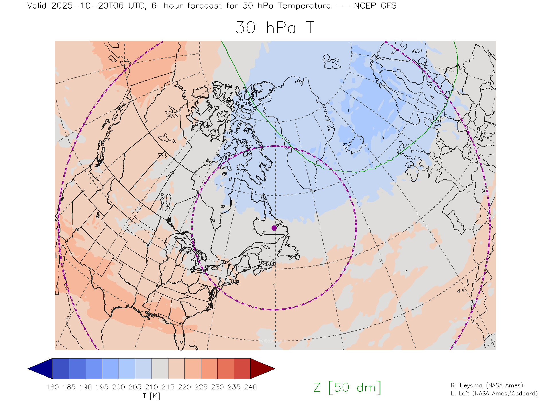 NCEP GFS Forecast 30 hPa Temp.