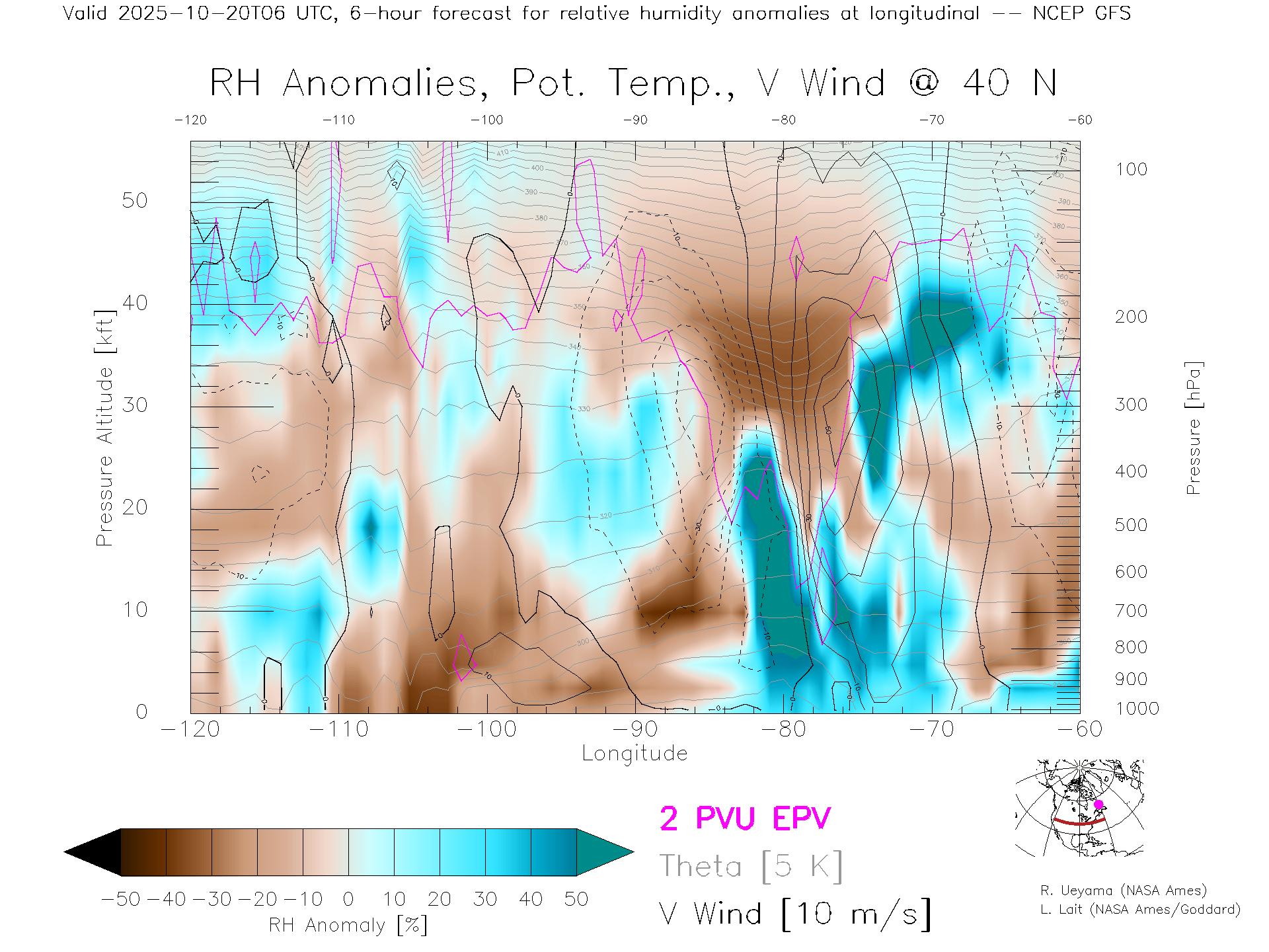 NCEP GFS Forecast Rel. Hum. X-Section (40 N)
