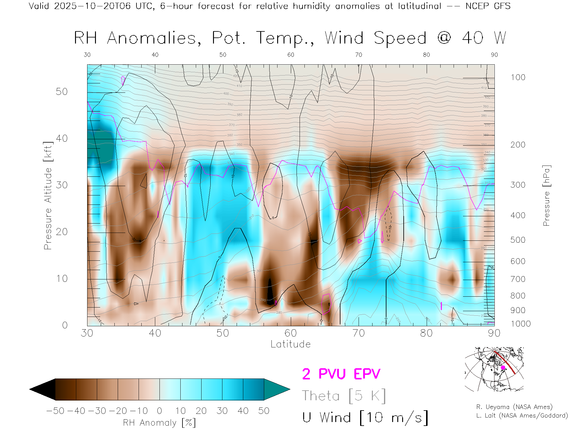 NCEP GFS Forecast Rel. Hum. X-Section (40 W)