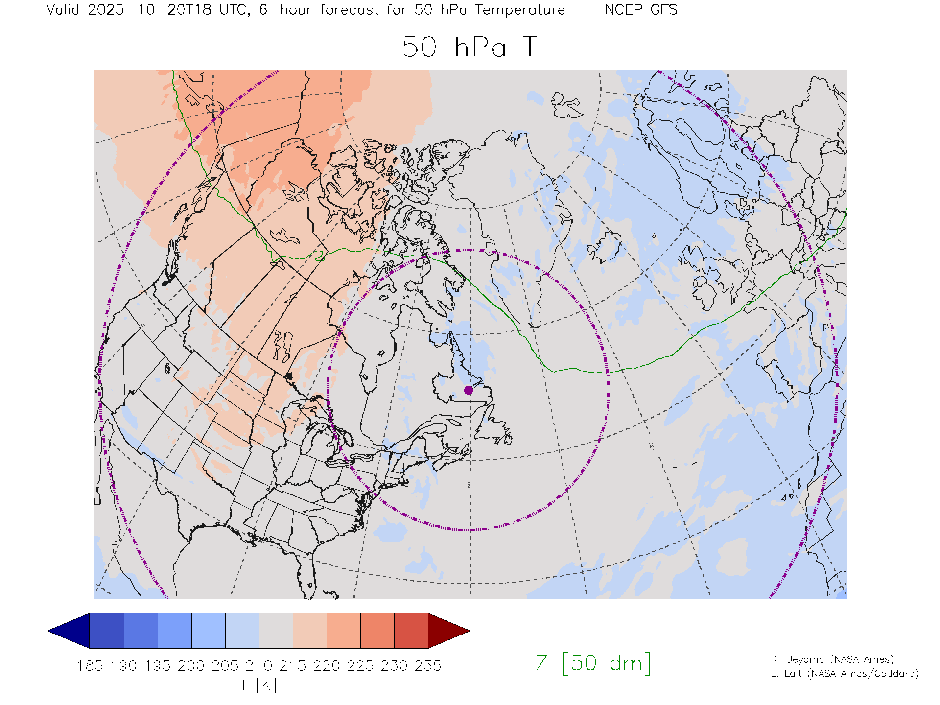 NCEP GFS Forecast 50 hPa Temp.