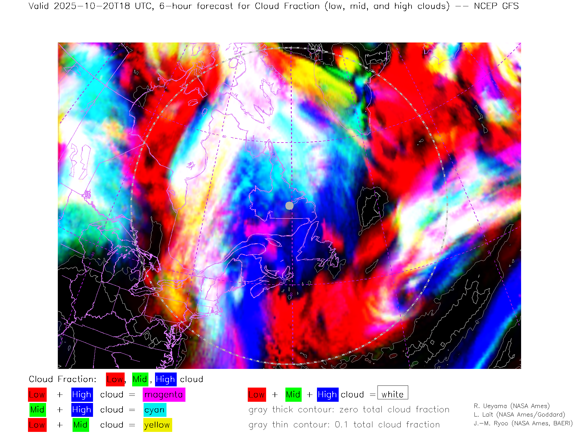 NCEP GFS Forecast Low-, Mid- and High-level Cloud Fraction