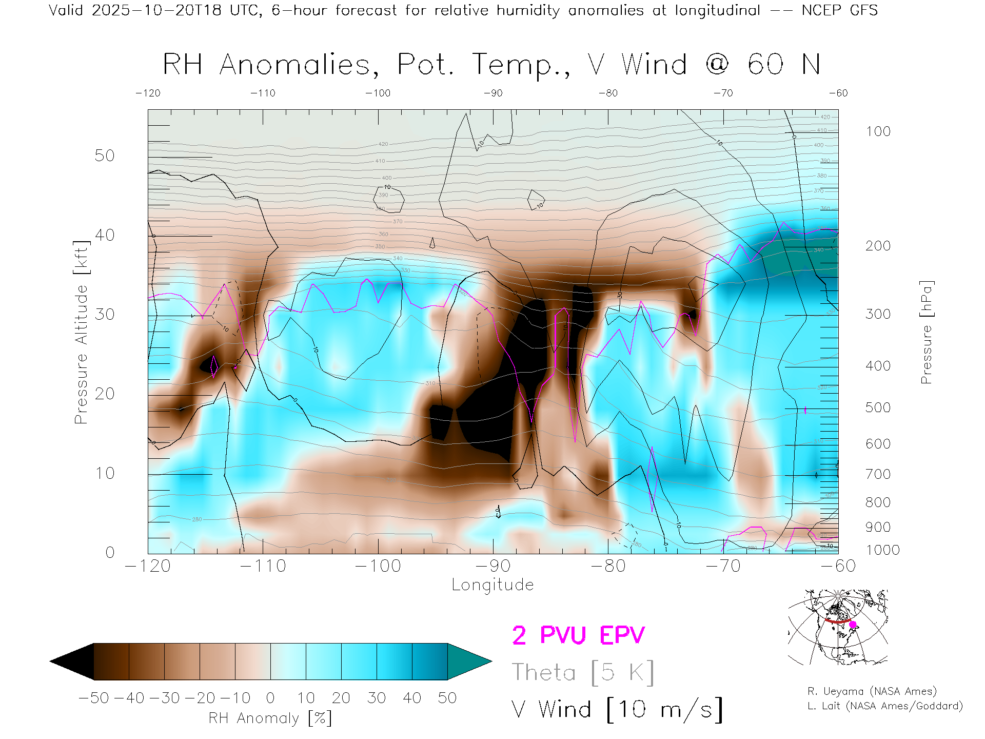 NCEP GFS Forecast Rel. Hum. X-Section (60 N)