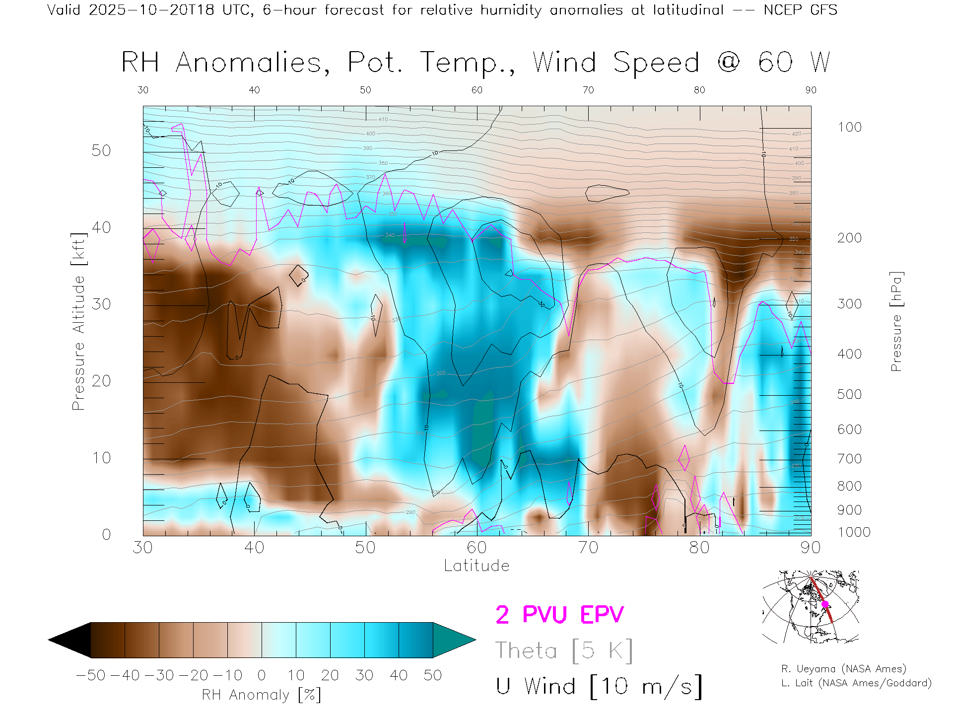 NCEP GFS Forecast Rel. Hum. X-Section (60 W)