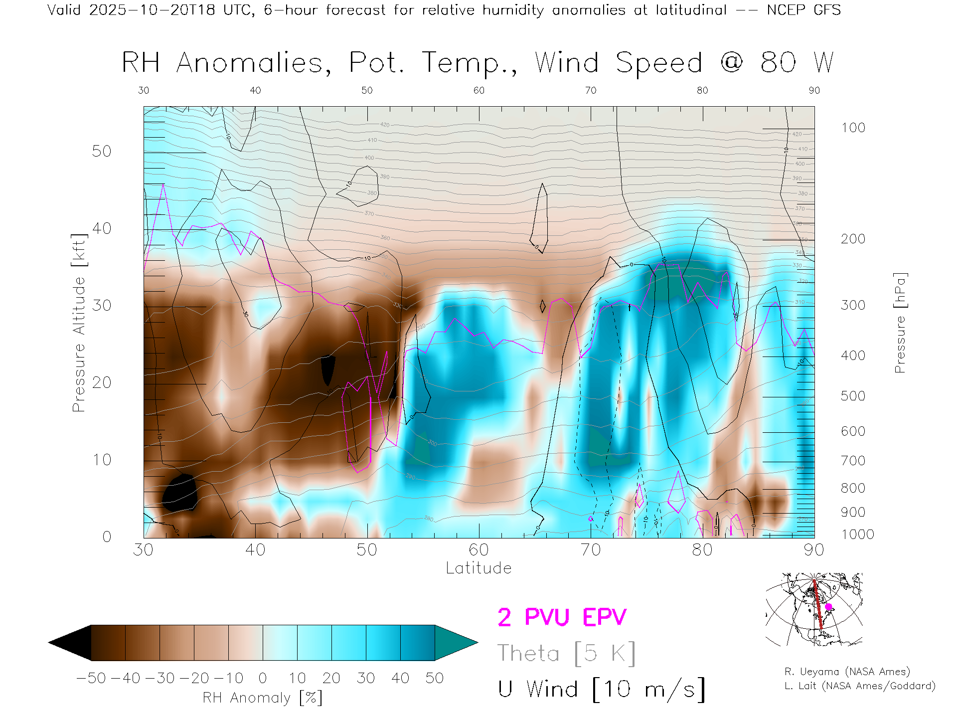 NCEP GFS Forecast Rel. Hum. X-Section (80 W)