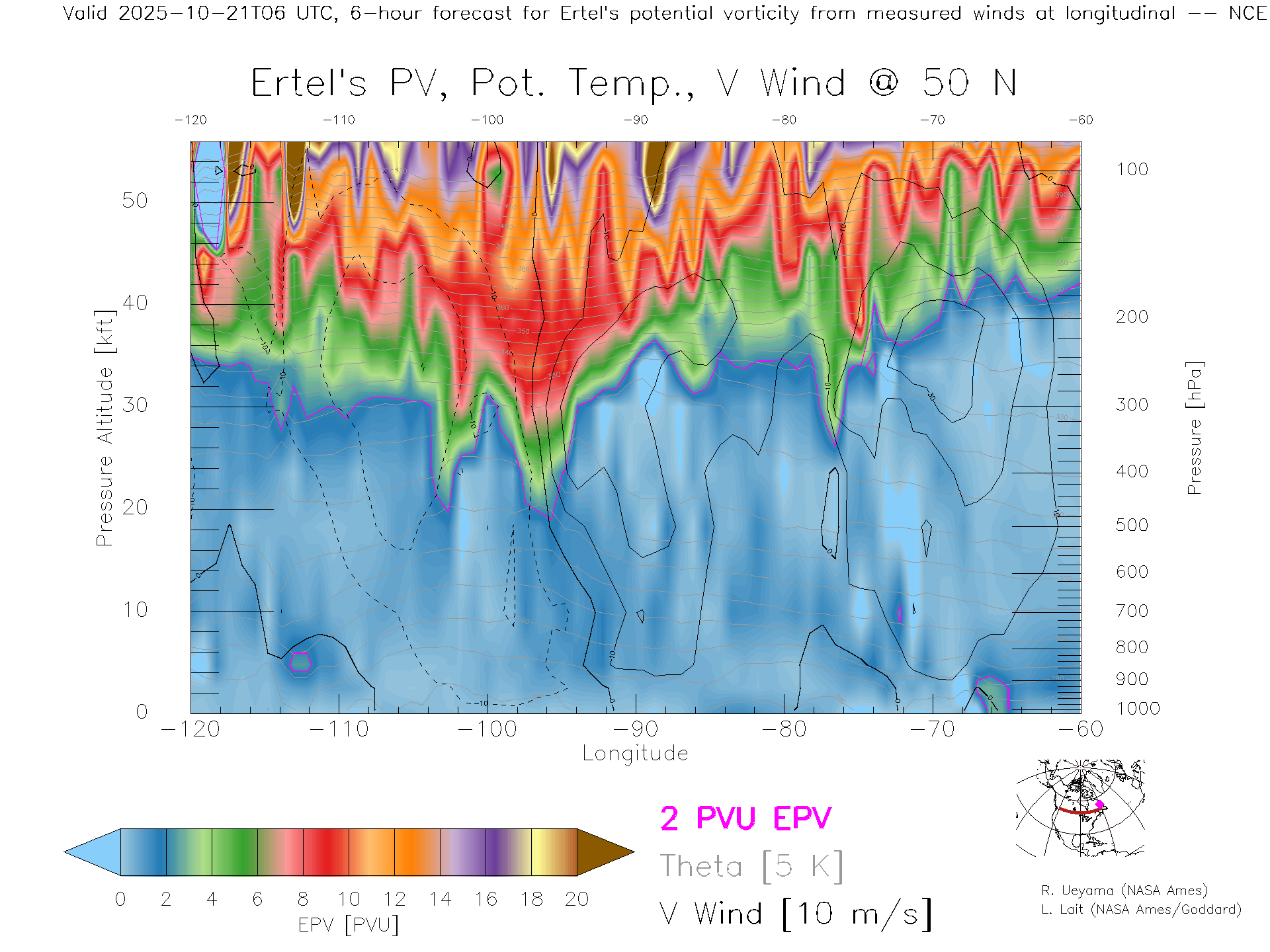 NCEP GFS Forecast PV X-Section (50 N)