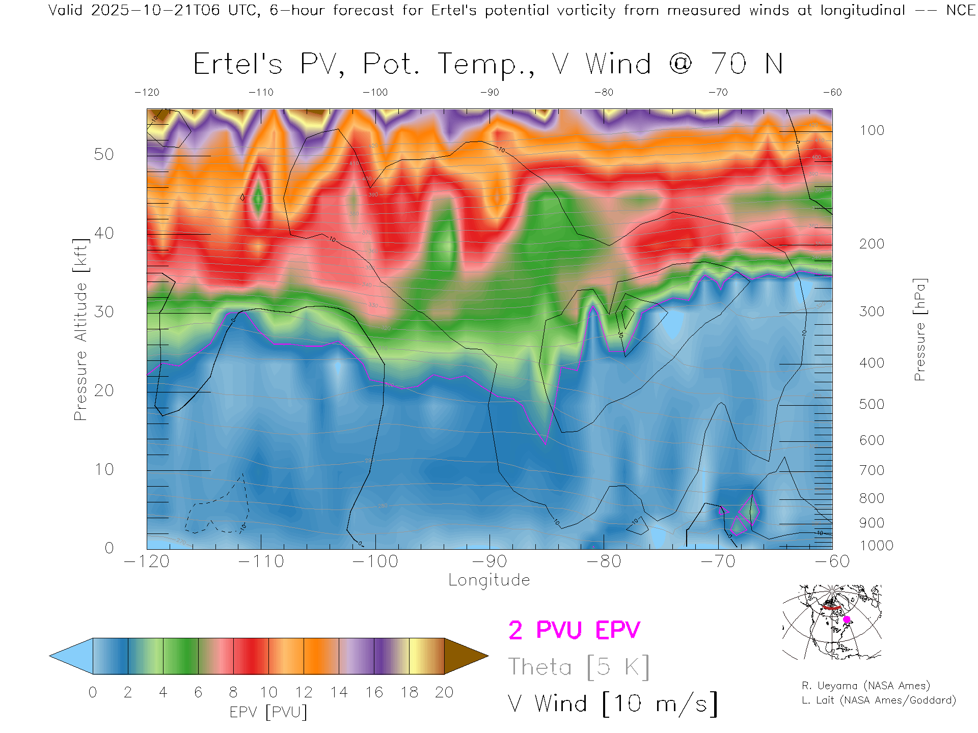 NCEP GFS Forecast PV X-Section (70 N)