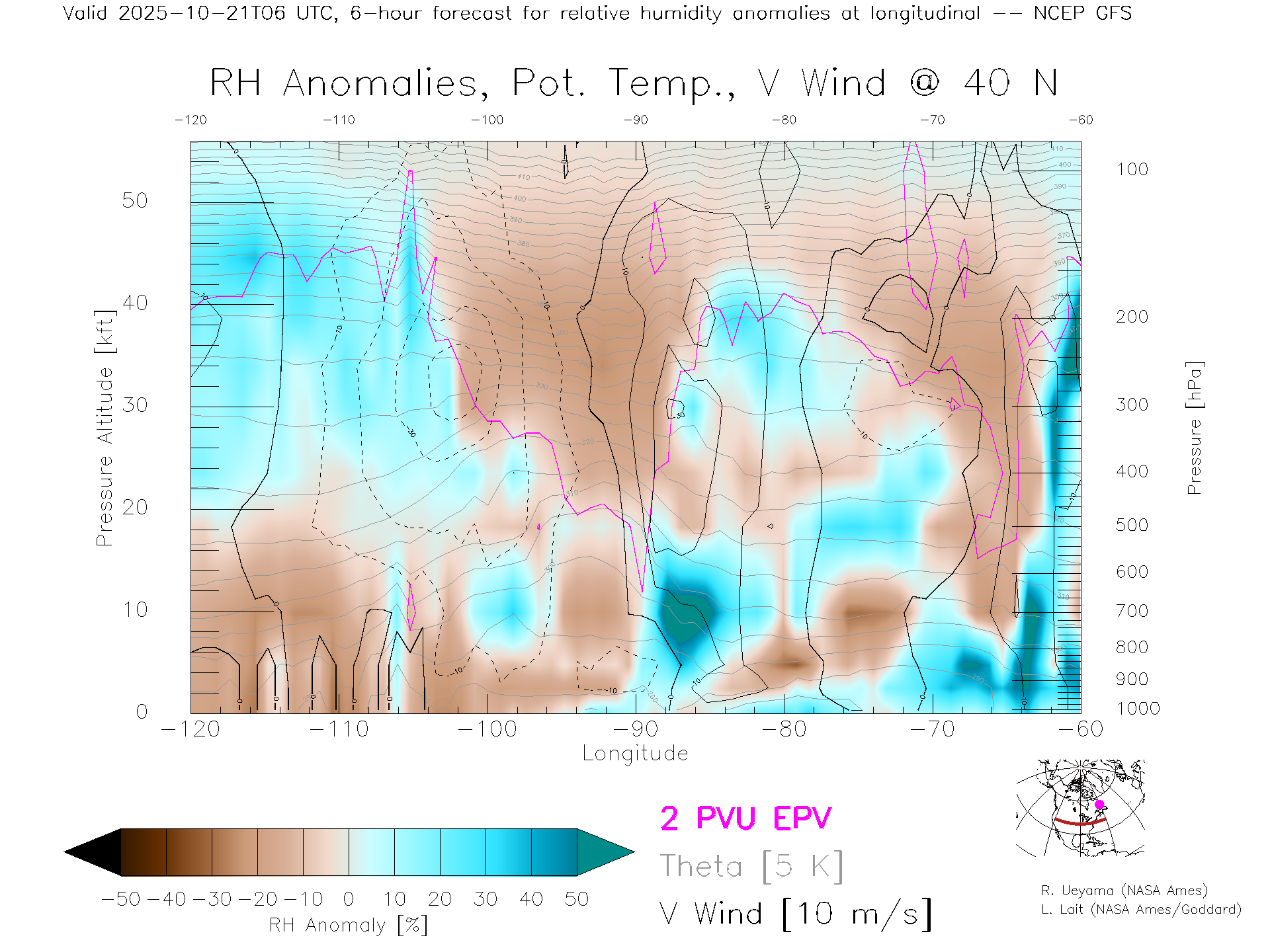 NCEP GFS Forecast Rel. Hum. X-Section (40 N)