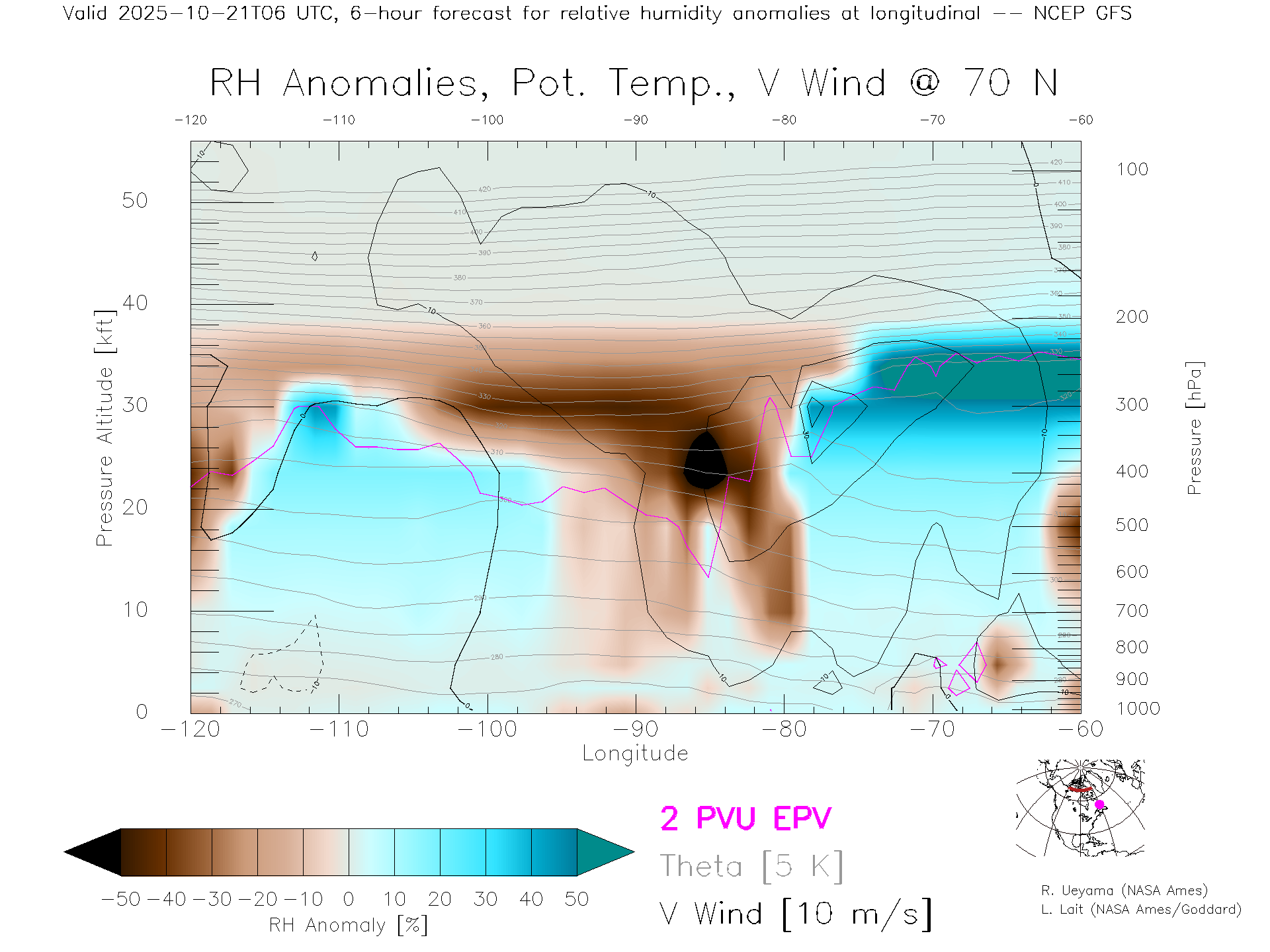 NCEP GFS Forecast Rel. Hum. X-Section (70 N)