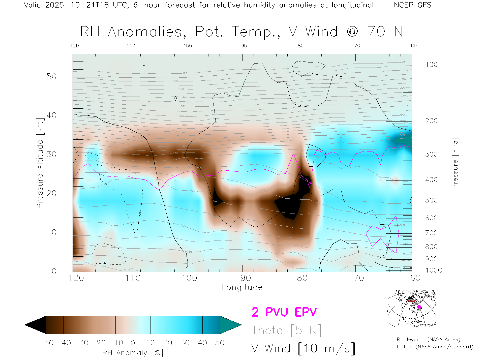 NCEP GFS Forecast Rel. Hum. X-Section (70 N)