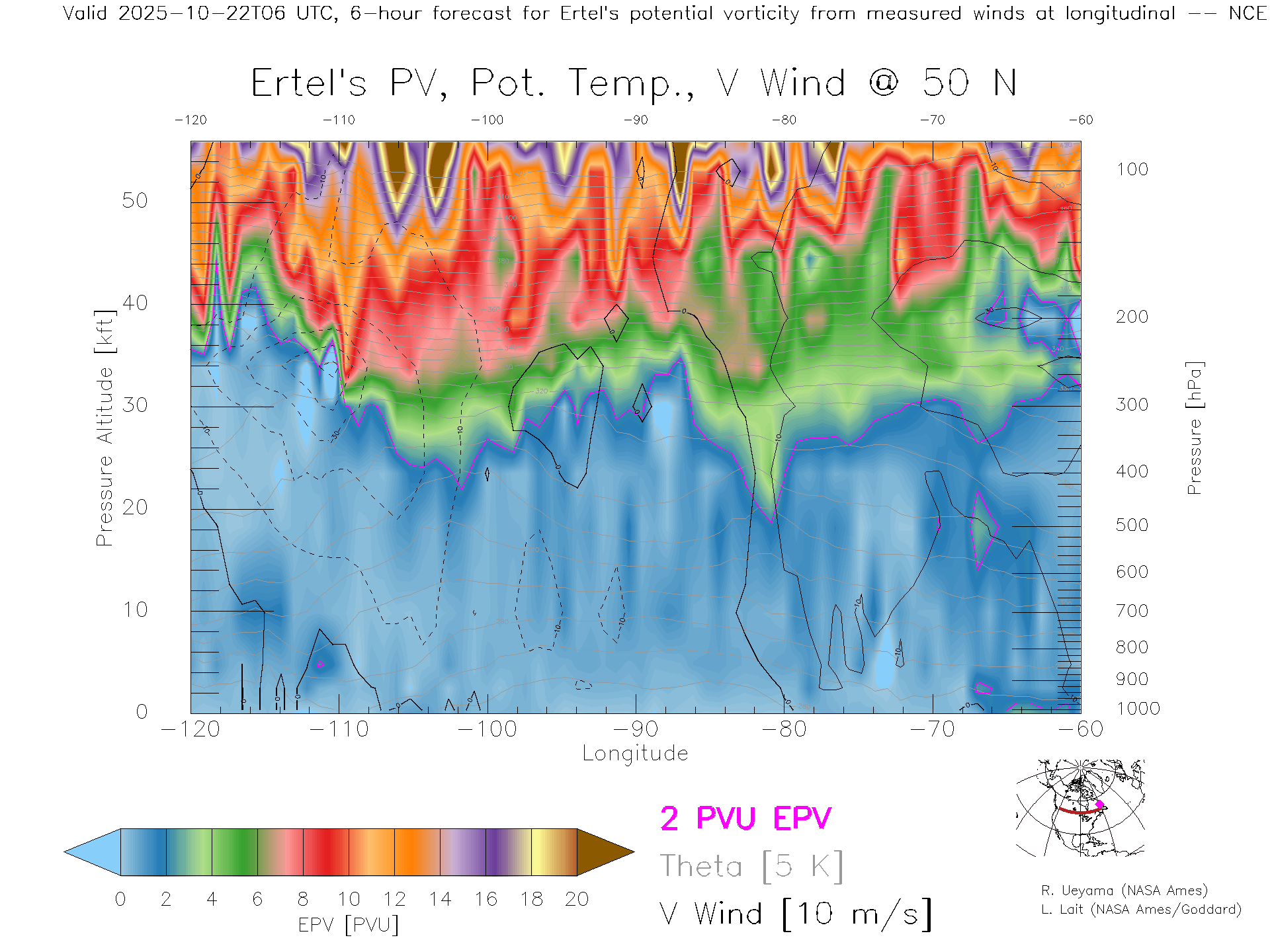 NCEP GFS Forecast PV X-Section (50 N)