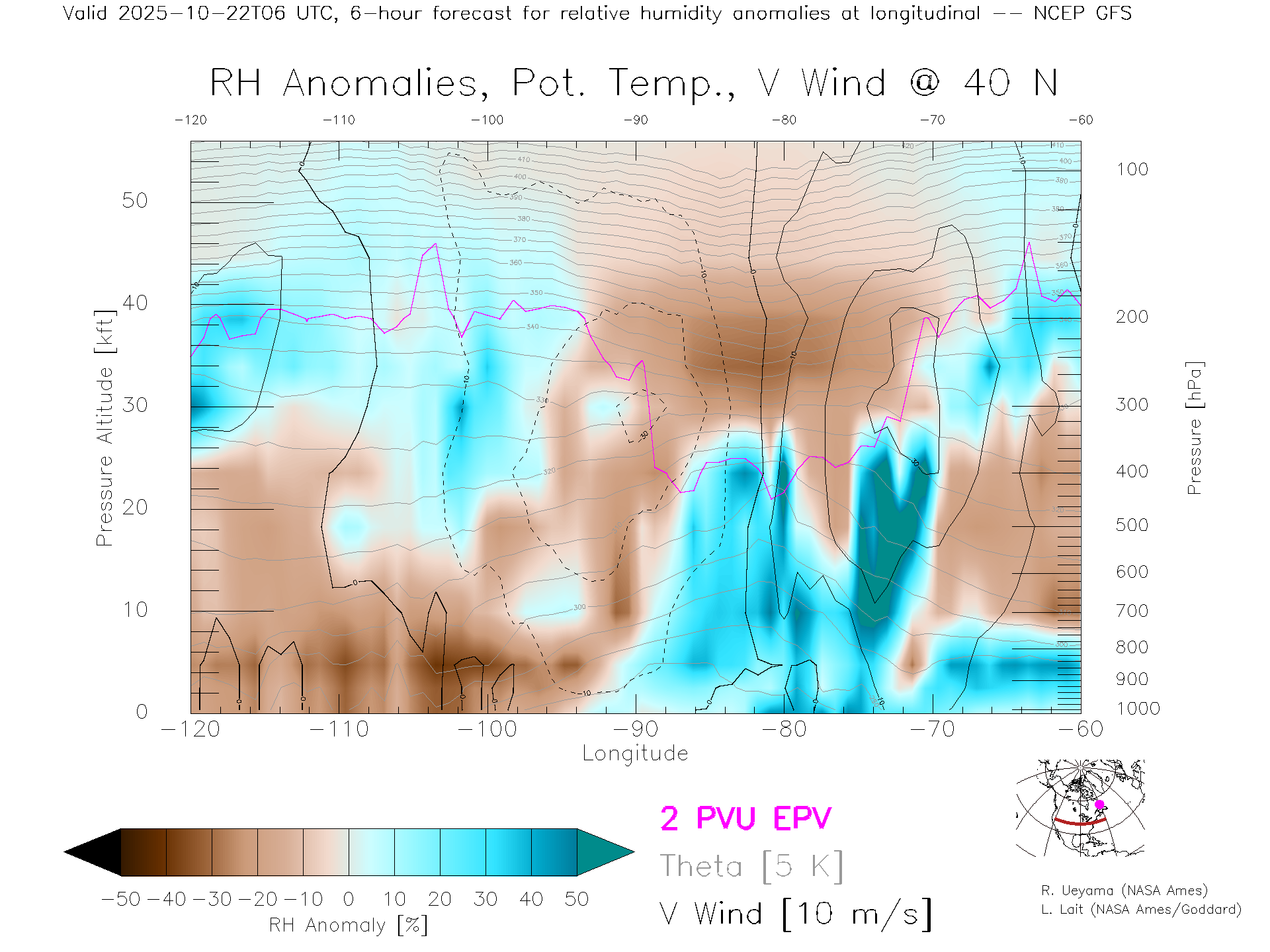 NCEP GFS Forecast Rel. Hum. X-Section (40 N)
