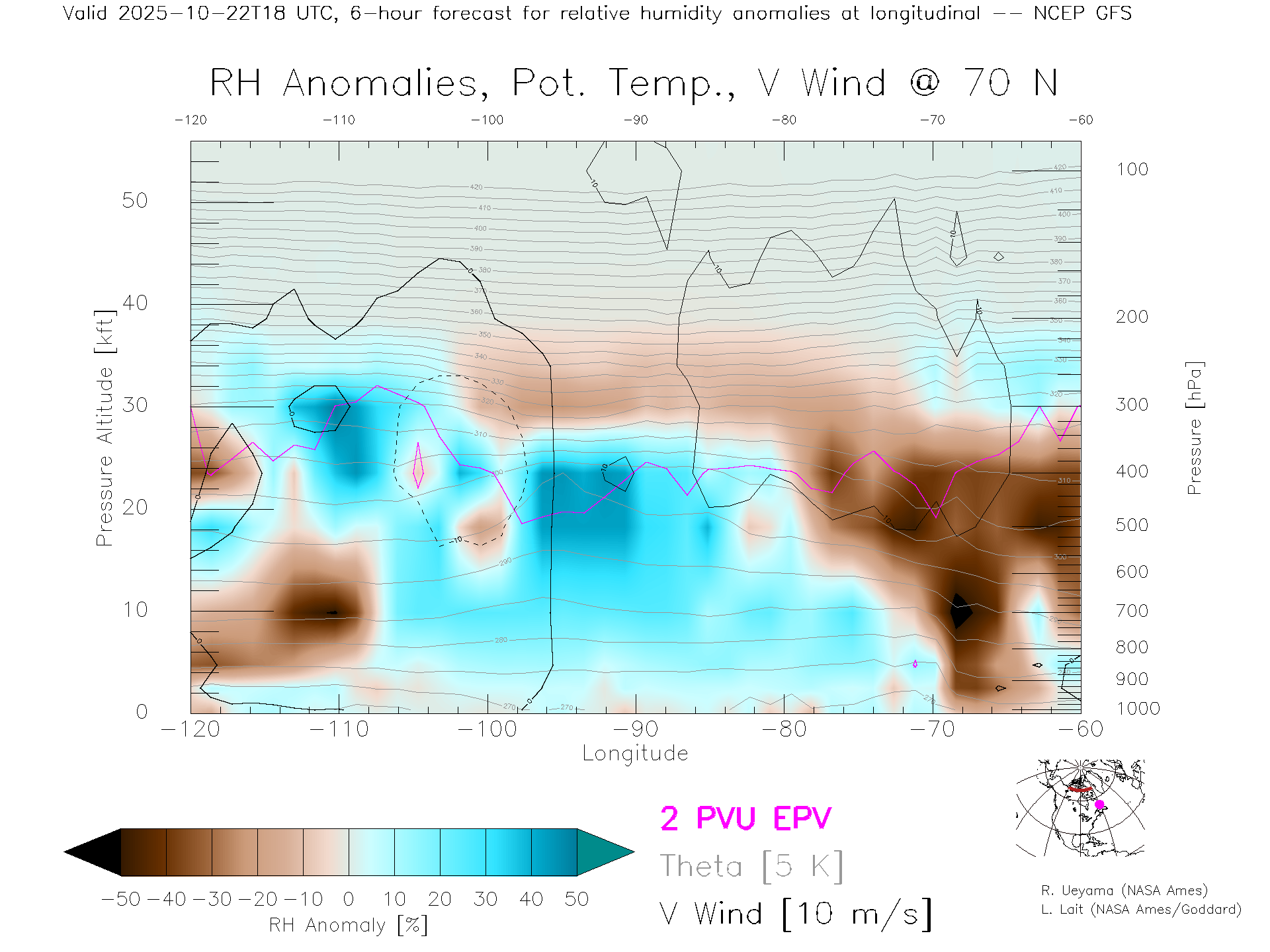NCEP GFS Forecast Rel. Hum. X-Section (70 N)