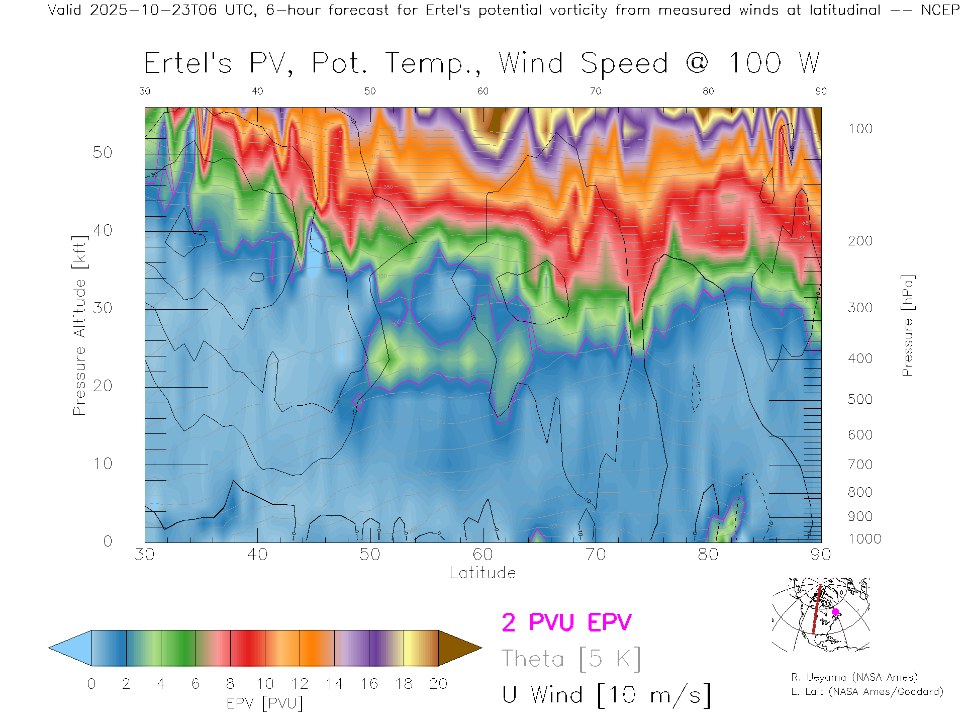 NCEP GFS Forecast PV X-Section (100 W)