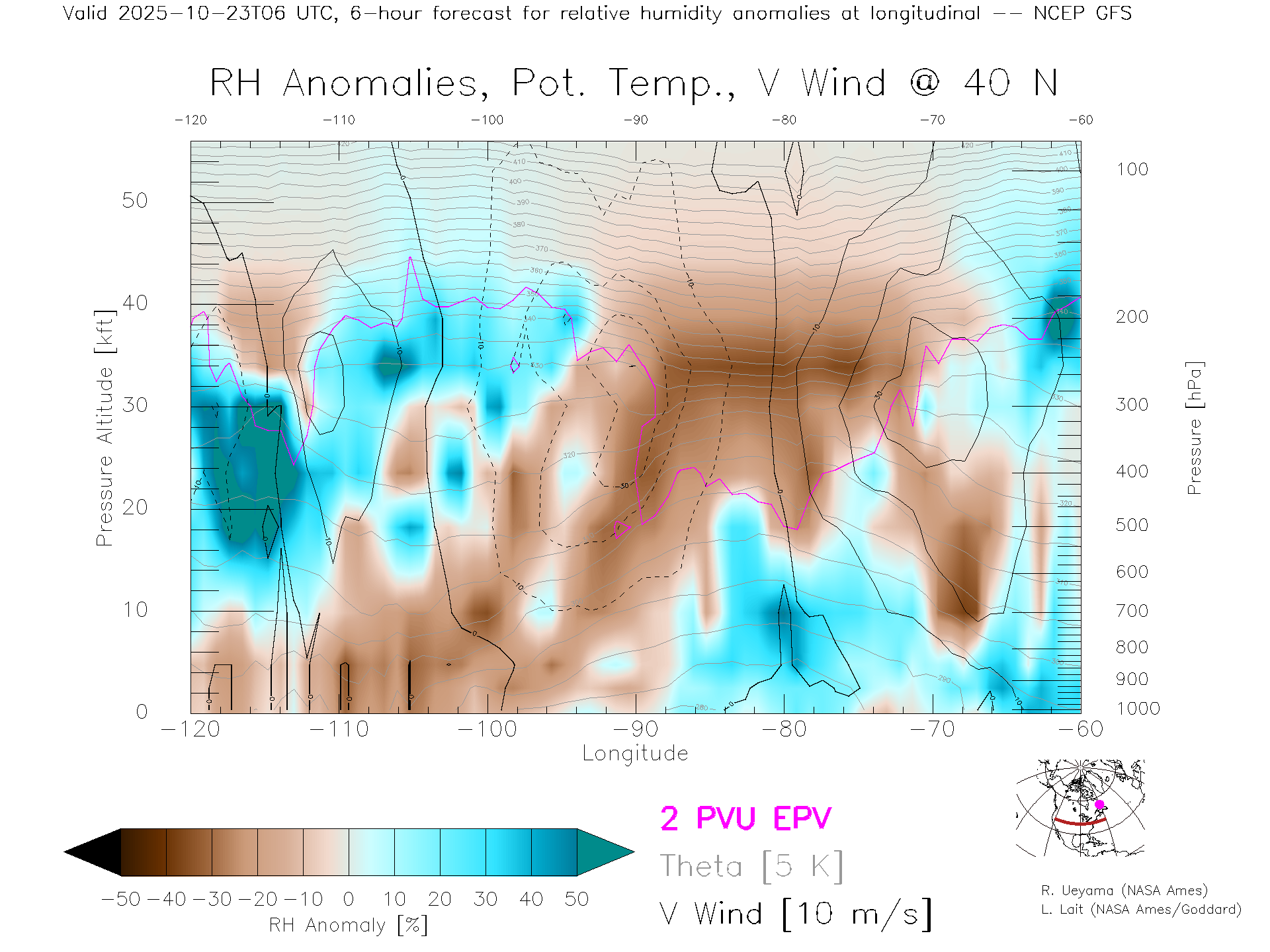 NCEP GFS Forecast Rel. Hum. X-Section (40 N)