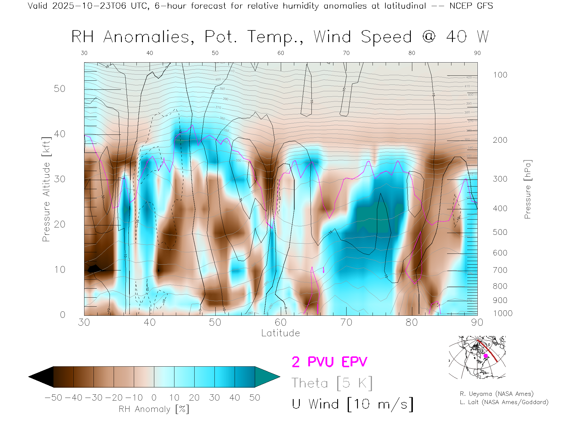 NCEP GFS Forecast Rel. Hum. X-Section (40 W)
