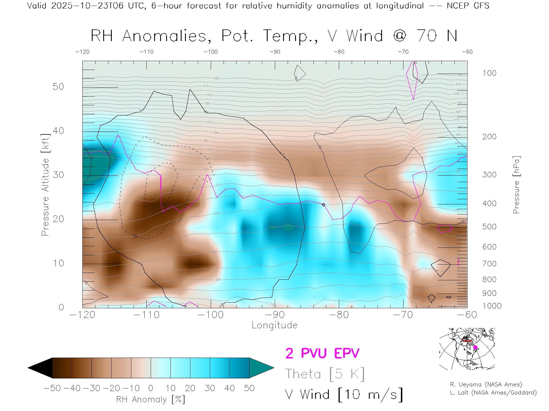NCEP GFS Forecast Rel. Hum. X-Section (70 N)