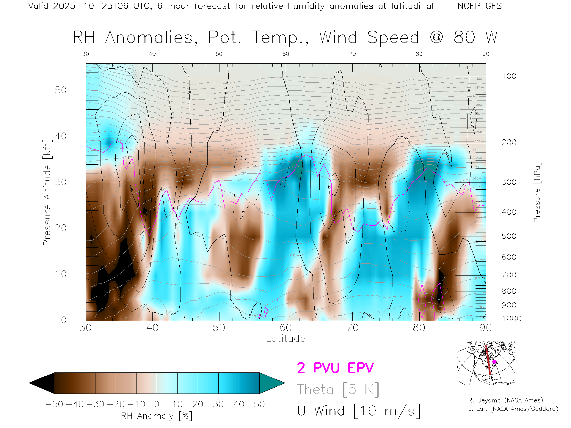 NCEP GFS Forecast Rel. Hum. X-Section (80 W)