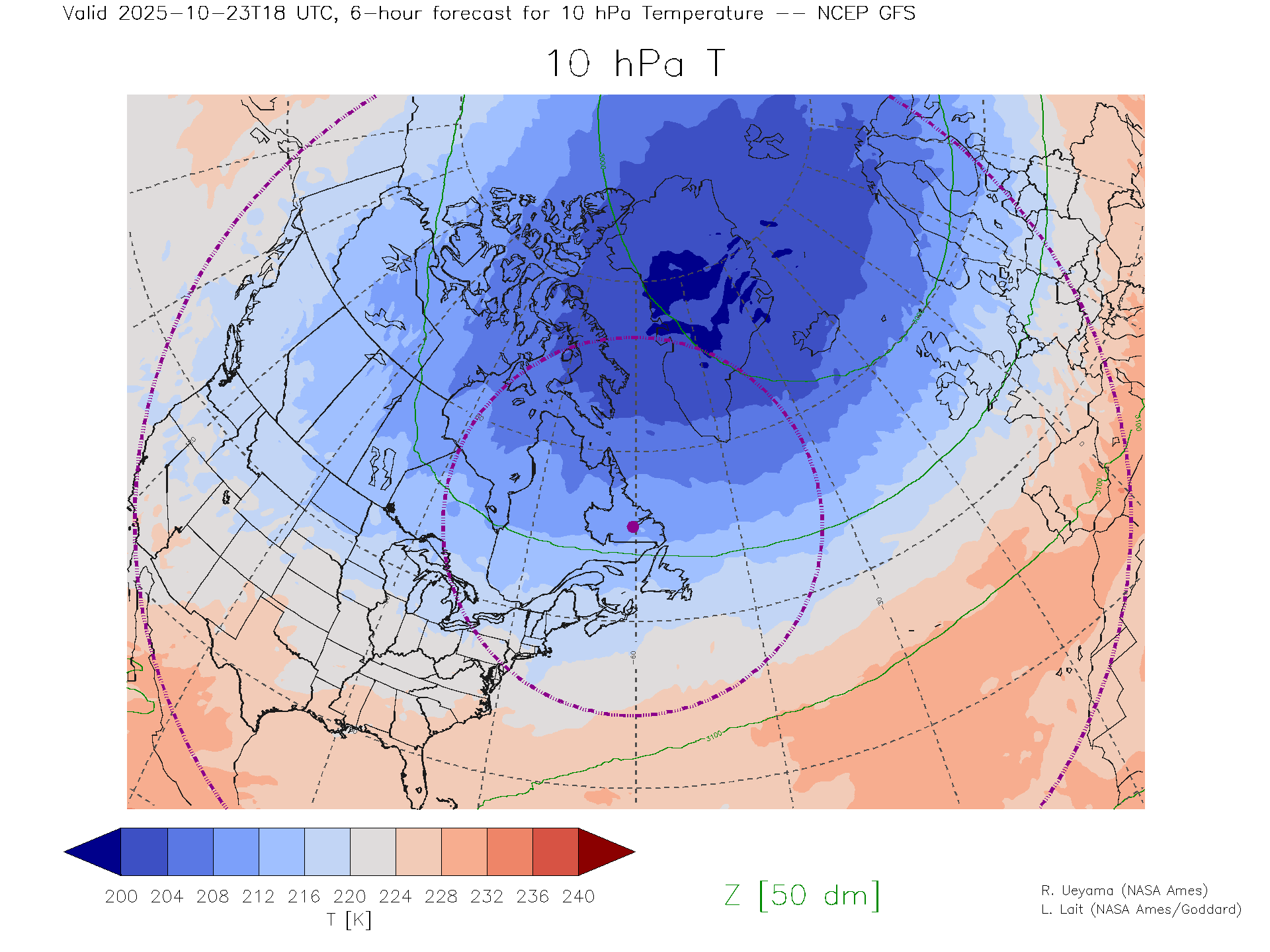 NCEP GFS Forecast 10 hPa Temp.