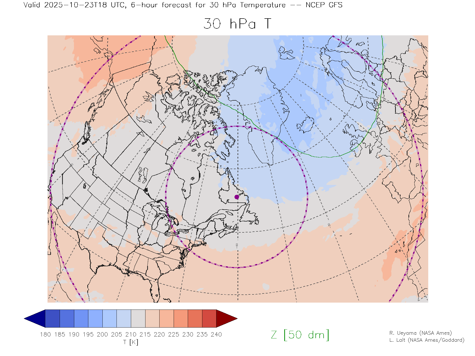 NCEP GFS Forecast 30 hPa Temp.