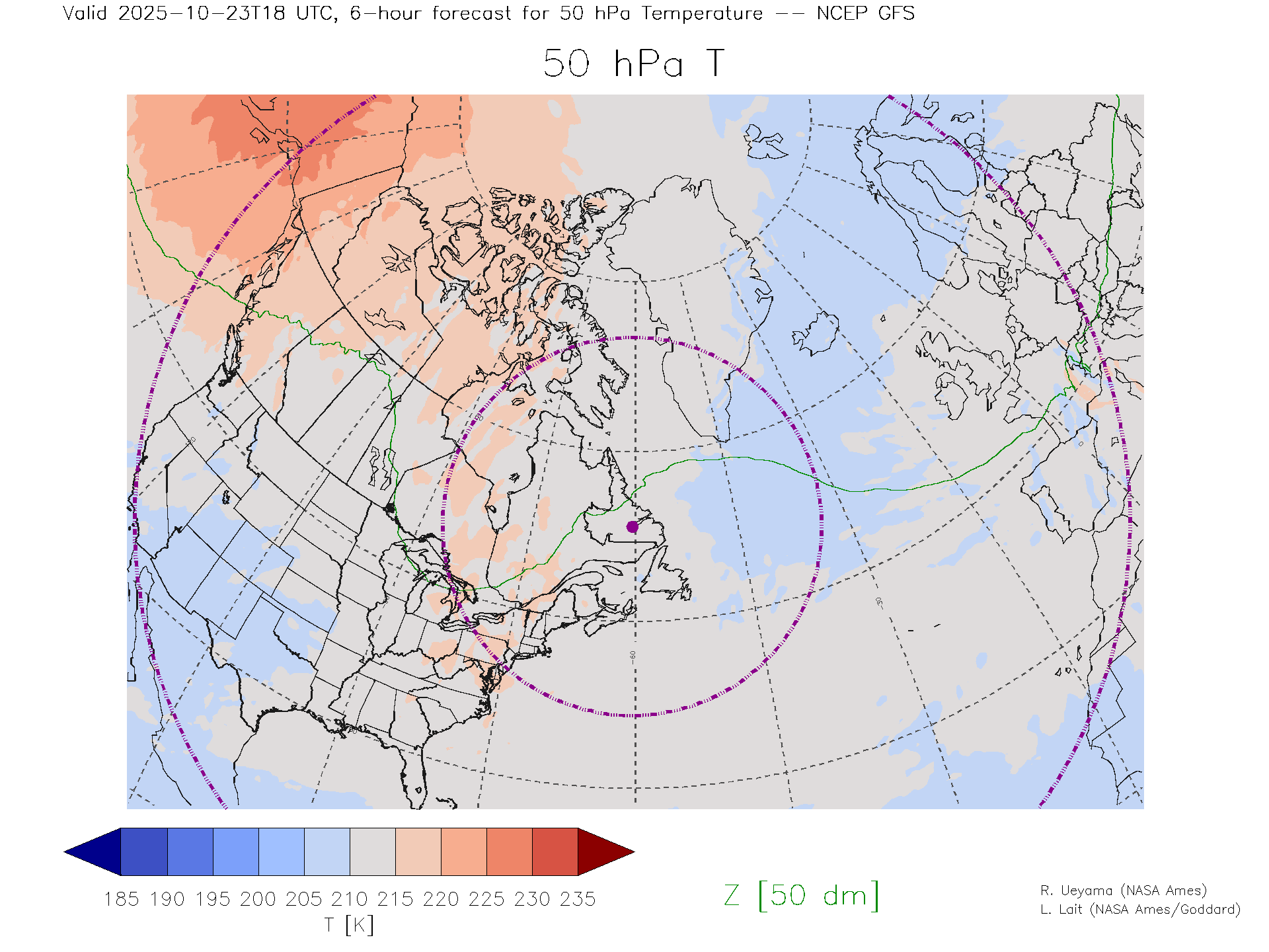 NCEP GFS Forecast 50 hPa Temp.