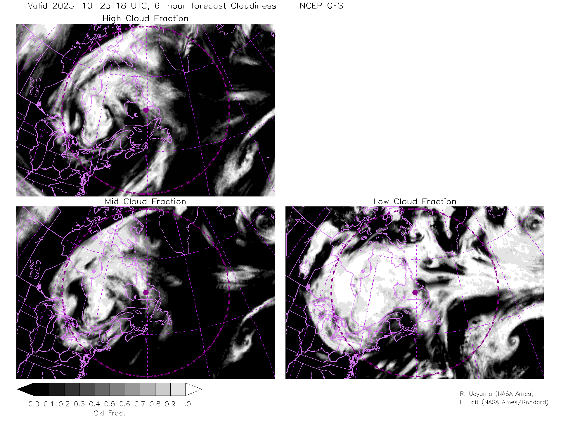 NCEP GFS Forecast Cloud Fraction (High, Mid, Low)
