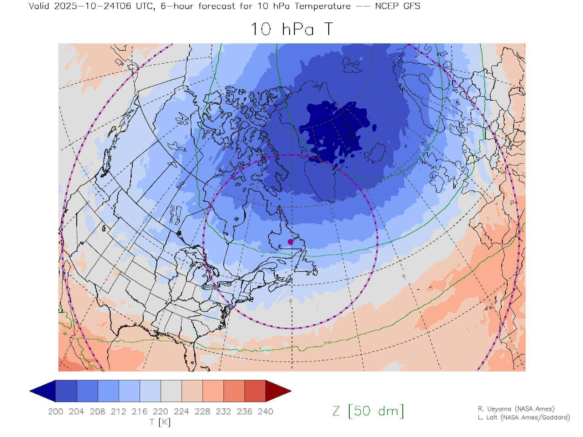 NCEP GFS Forecast 10 hPa Temp.
