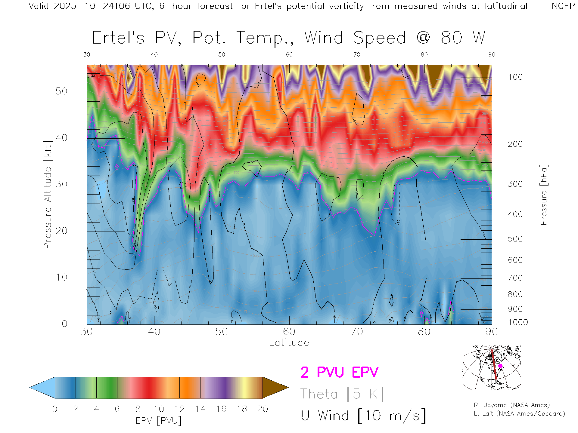 NCEP GFS Forecast PV X-Section (80 W)