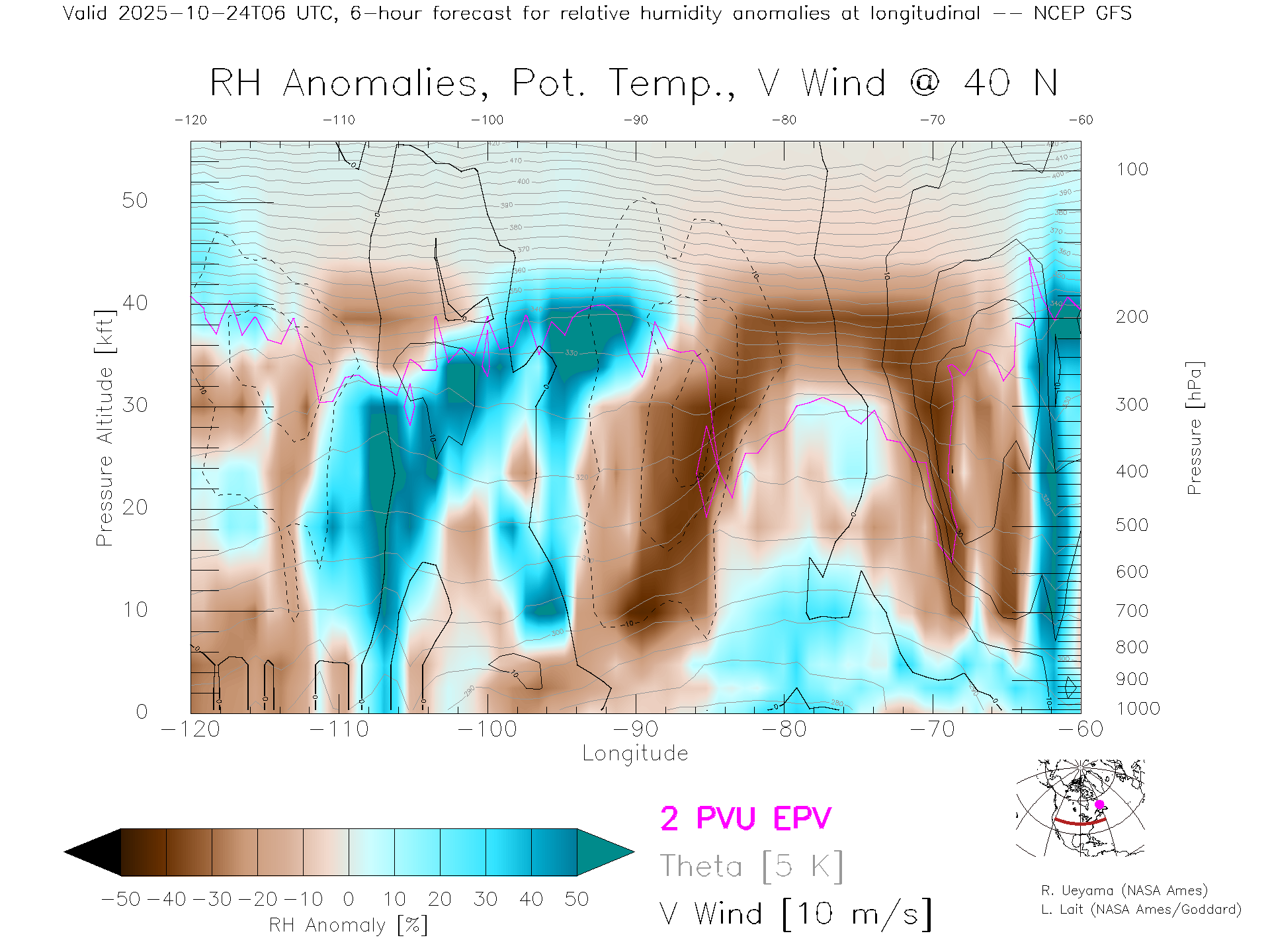 NCEP GFS Forecast Rel. Hum. X-Section (40 N)