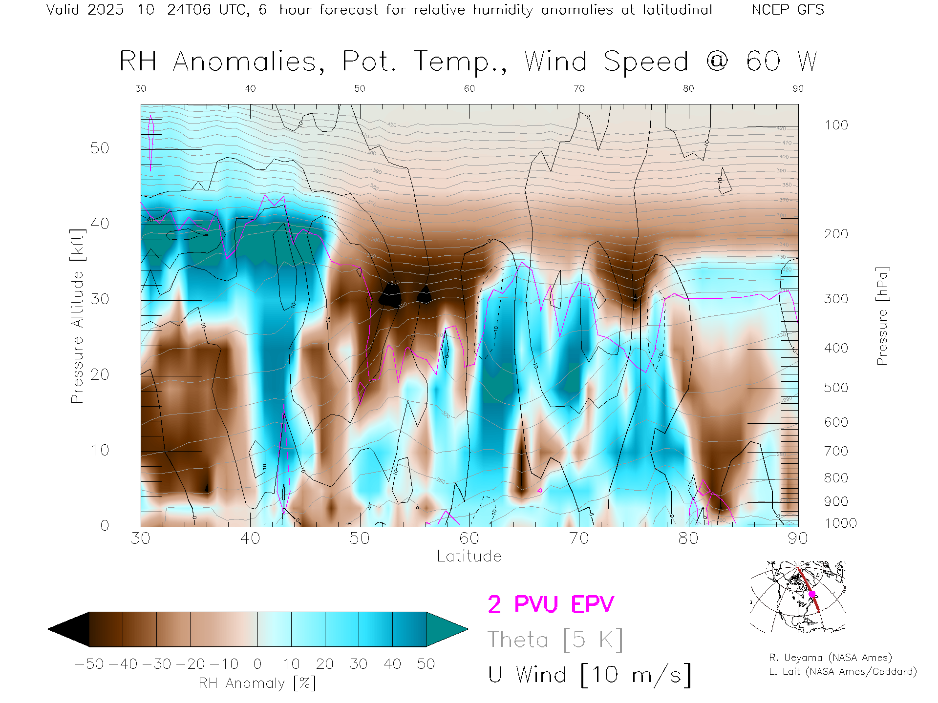NCEP GFS Forecast Rel. Hum. X-Section (60 W)