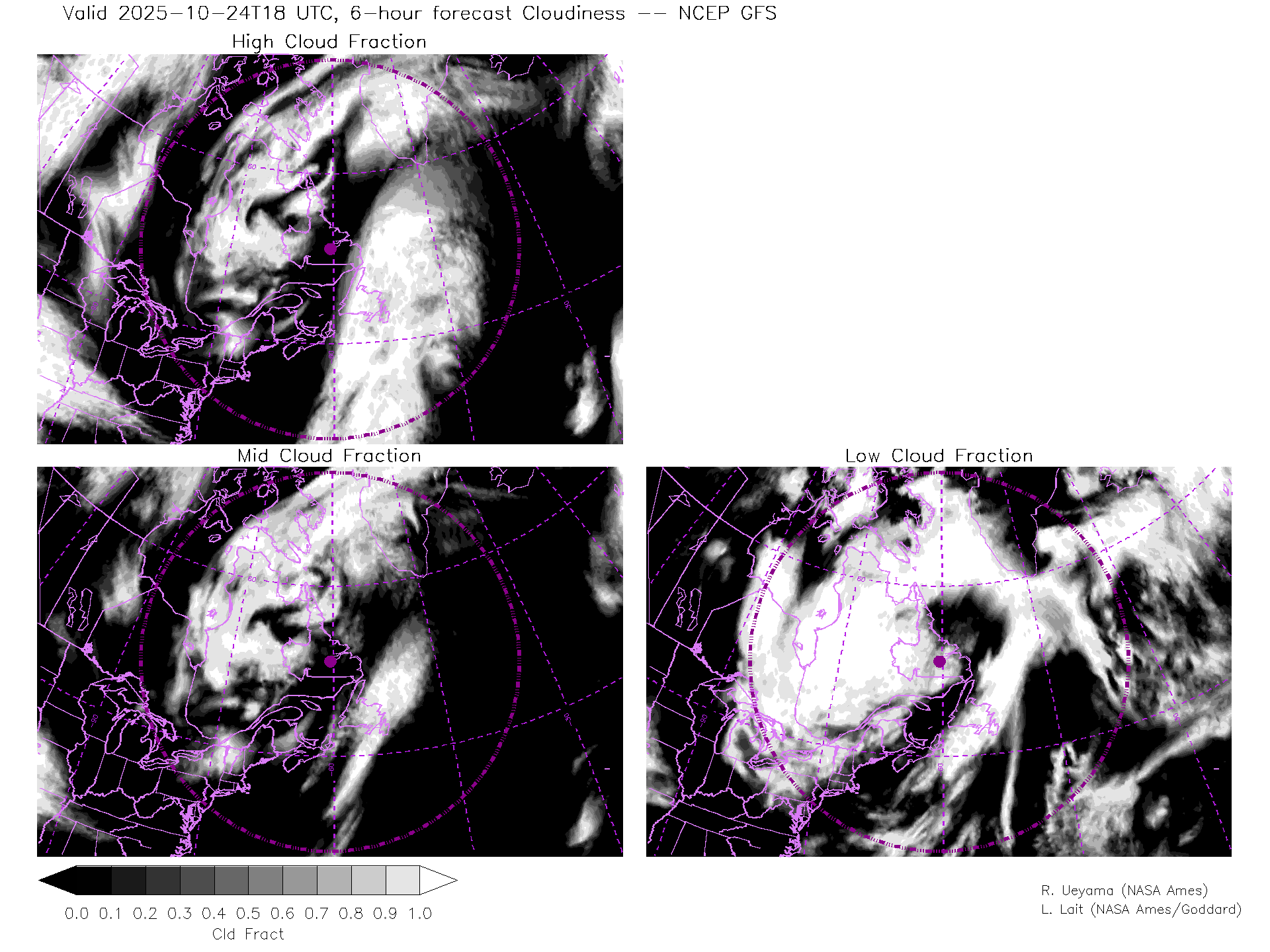 NCEP GFS Forecast Cloud Fraction (High, Mid, Low)