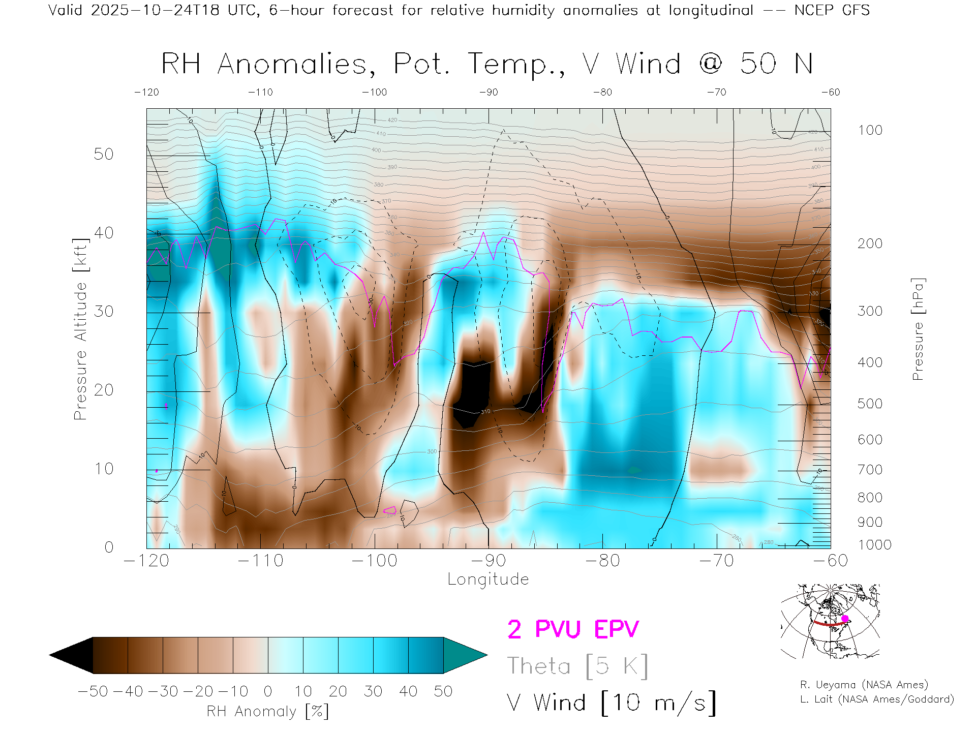 NCEP GFS Forecast Rel. Hum. X-Section (50 N)