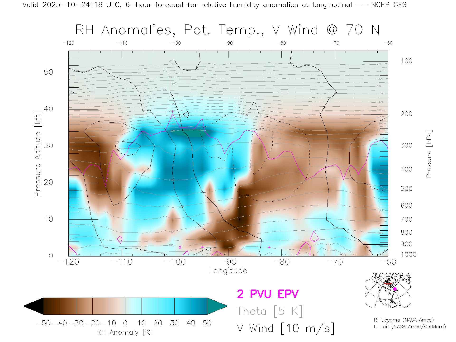 NCEP GFS Forecast Rel. Hum. X-Section (70 N)