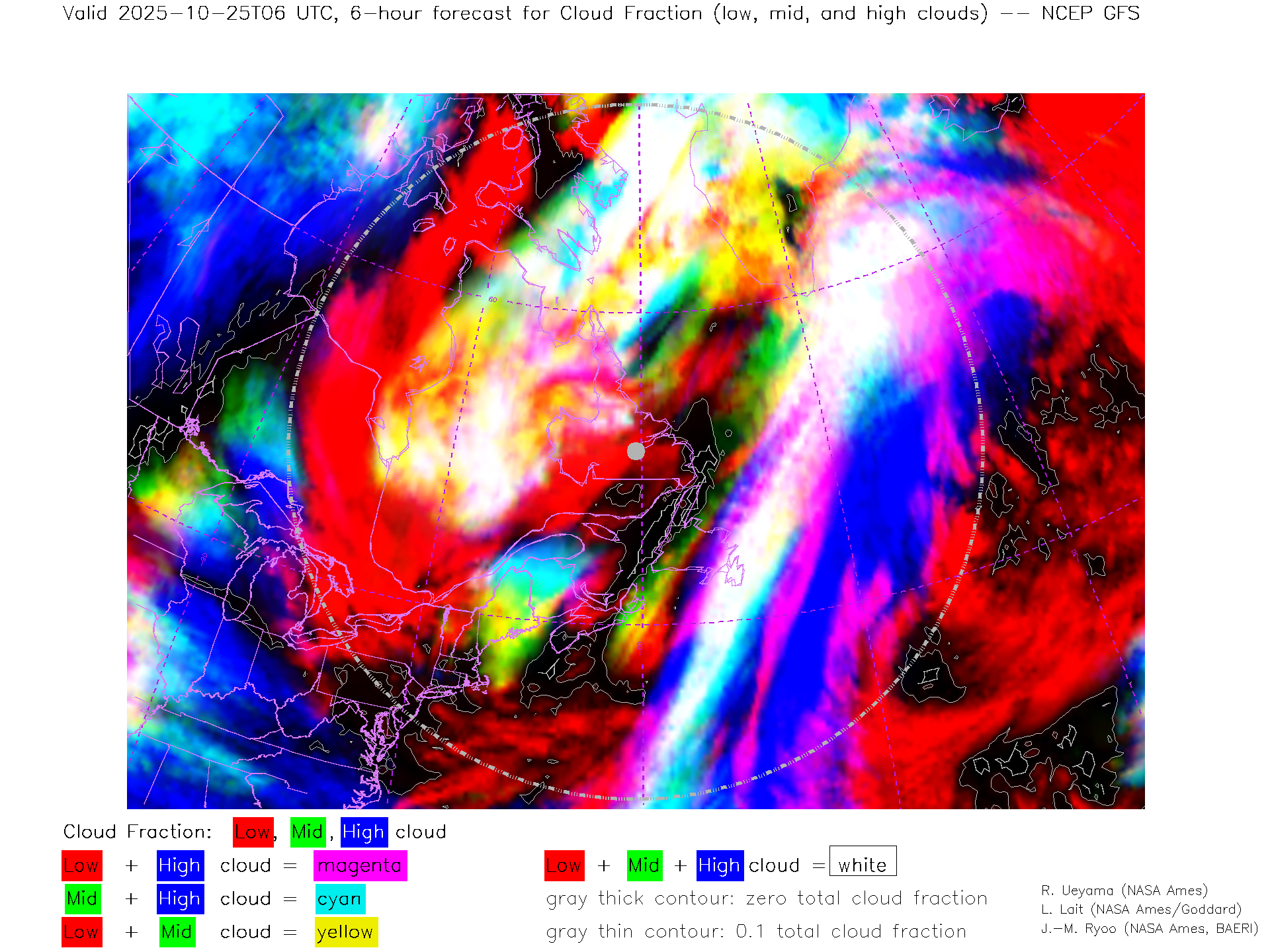 NCEP GFS Forecast Low-, Mid- and High-level Cloud Fraction