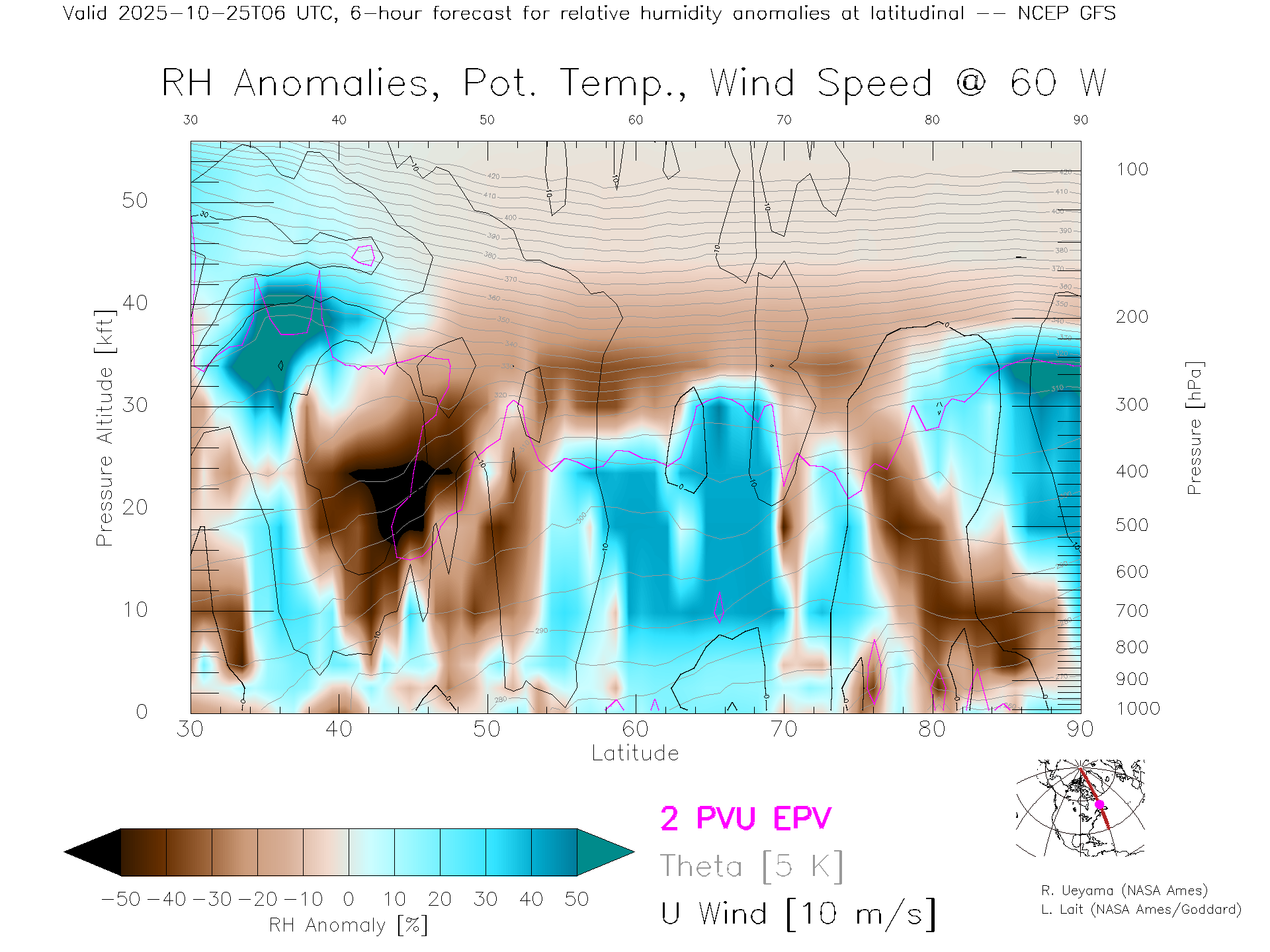 NCEP GFS Forecast Rel. Hum. X-Section (60 W)